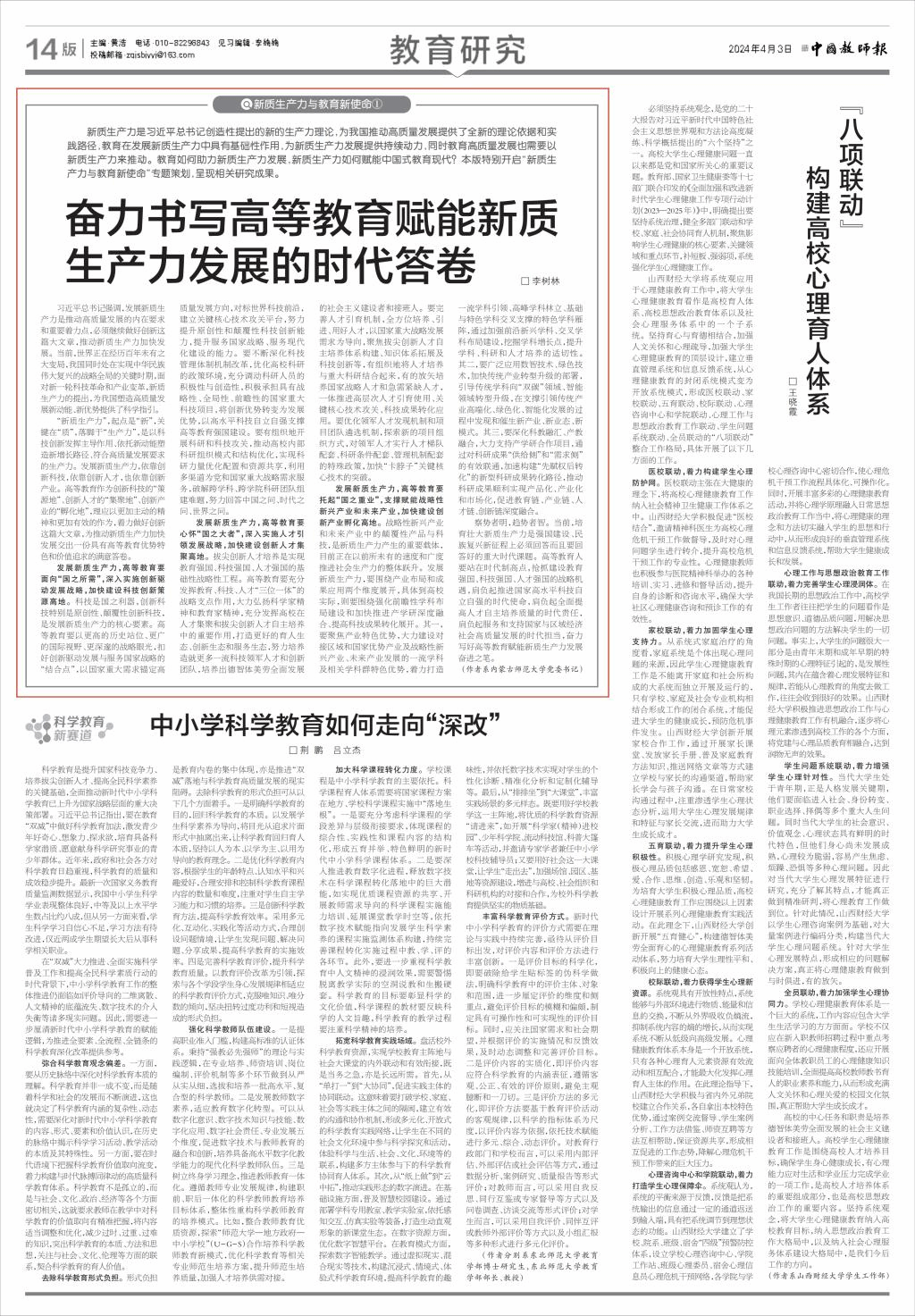 《中国教师报》4月3日第14版全文刊载beat365官网党委书记李树林署名文章《奋力书写高等教育赋能新质生产力发展的时代答卷》,全文如下。