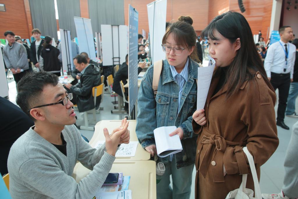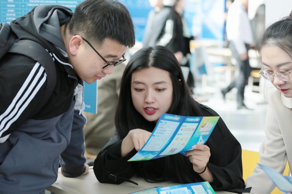 毕业生与用人单位交流。