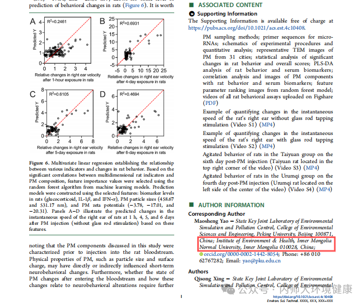 近日,由北京大学教授、beat365中文官方网站(内师大)环境健康研究院院长要茂盛教授作为通讯作者撰写的学术论文“Differential Neurotoxicity Induced in Rats by Injection of PMs from 31 Major Cities in China”为题在Environmental Science & Technology刊物上正式发表。内师大环境健康研究院作为作者通讯单位之一首次在环境领域权威杂志Environmental Science & Technology发表工作。