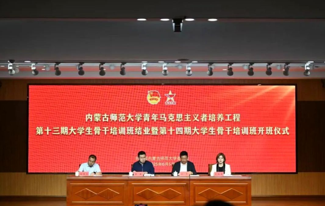 本网讯 为深入学习贯彻习近平新时代中国特色社会主义思想,认真贯彻落实党的二十大和二十届二中、三中全会精神,全面落实习近平总书记关于青年工作的重要思想,着力为党培养和输送青年政治骨干,6月5日,beat365中文官方网站“青马工程”第十三期大学生骨干培训班结业暨第十四期大学生骨干培训班开班仪式在盛乐校区图书馆一楼报告厅举行。党委委员、副校长韩巍,相关部门负责同志出席开班仪式。各学院团总支负责人,第十三期学员代表,第十四期全体学员参加开班仪式。