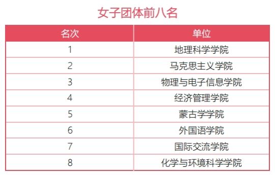 经过三天的激烈角逐,大赛评选出团体总分前8名、男子团体前8名、女子团体前8名、体育工作先进集体8个、体育工作先进个人12名、体育道德风尚奖10个、刘懿婷等优秀裁判员19名、木日根等优秀运动员46名。