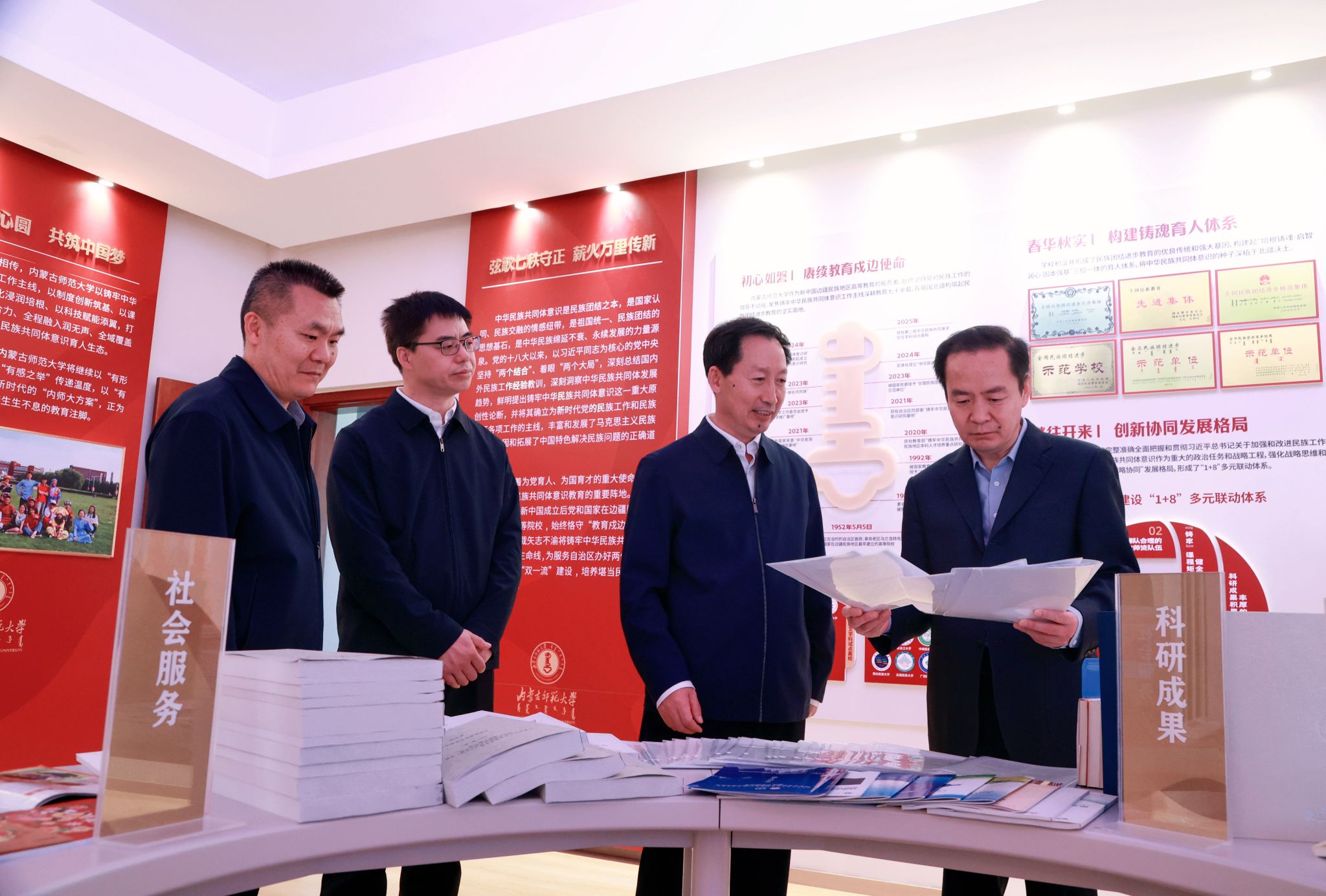 5月15日,自治区党委教育工委书记、教育厅党组书记、厅长杜汇良一行深入beat365中文官方网站调研,实地查看了沪蒙生态与可持续设计联合实验室、国家民委beat365中文官方网站中华民族共同体研究基地,并召开座谈会。
