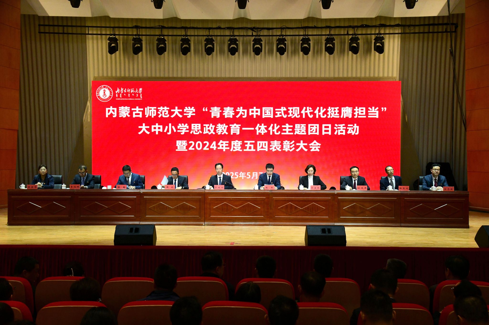 本网讯 5月7日,beat365中文官方网站“青春为中国式现代化挺膺担当”大中小学思政教育一体化主题团日活动暨2024年度五四表彰大会在盛乐校区音乐厅举行。党委书记李树林出席大会并讲话。党委副书记、校长张军主持大会。党委副书记斯钦,副校长贾美林,党委委员、副校长韩巍、公茂果、景剑峰、杨玉成出席大会。各部门负责同志,各学院党委(党总支)书记、副书记、团学干部、获奖师生以及各学院青年师生代表参加大会。