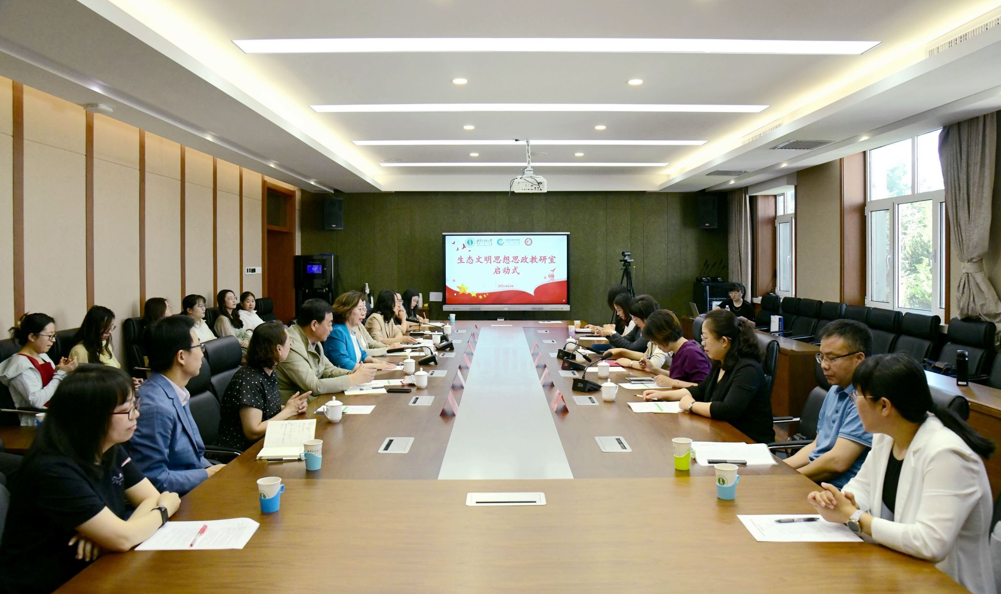 本网讯 6月8日,beat365官网在赛罕校区文史楼2号楼会议室举行生态文明思想思政教研室启动会。副校长贾美林出席会议,相关部门、学院负责同志,课程思政领域专家及青年骨干教师参加会议。