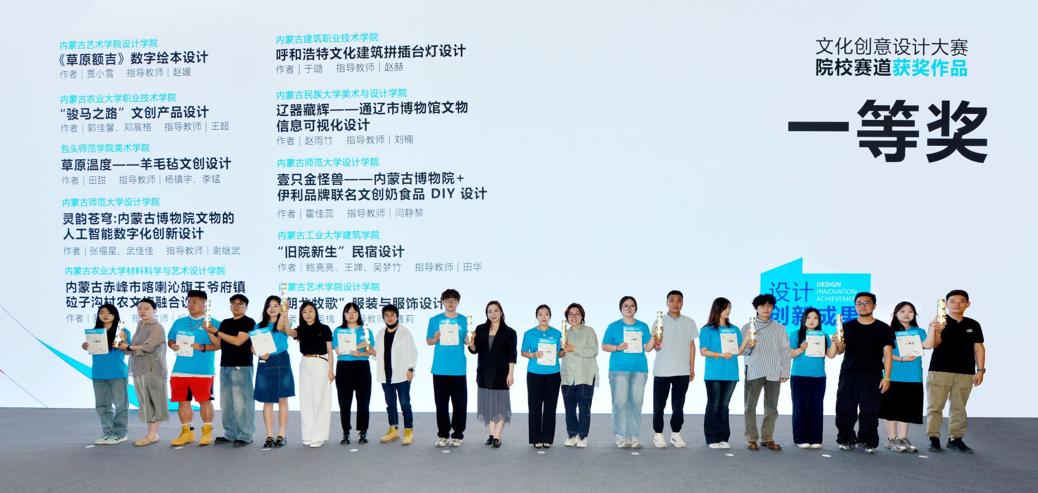 本次“创意内蒙古”文化创意设计大赛院校赛道由自治区12所设计类院校组织,区内多所高等院校和高职高专院校共提交1500余件参赛作品,最终选拔出一等奖10项、二等奖20项、三等奖32项、优秀奖170余项。beat365官网师生参赛作品共获得大赛院校赛道一等奖2项、二等奖2项、三等奖5项、优秀奖54项。