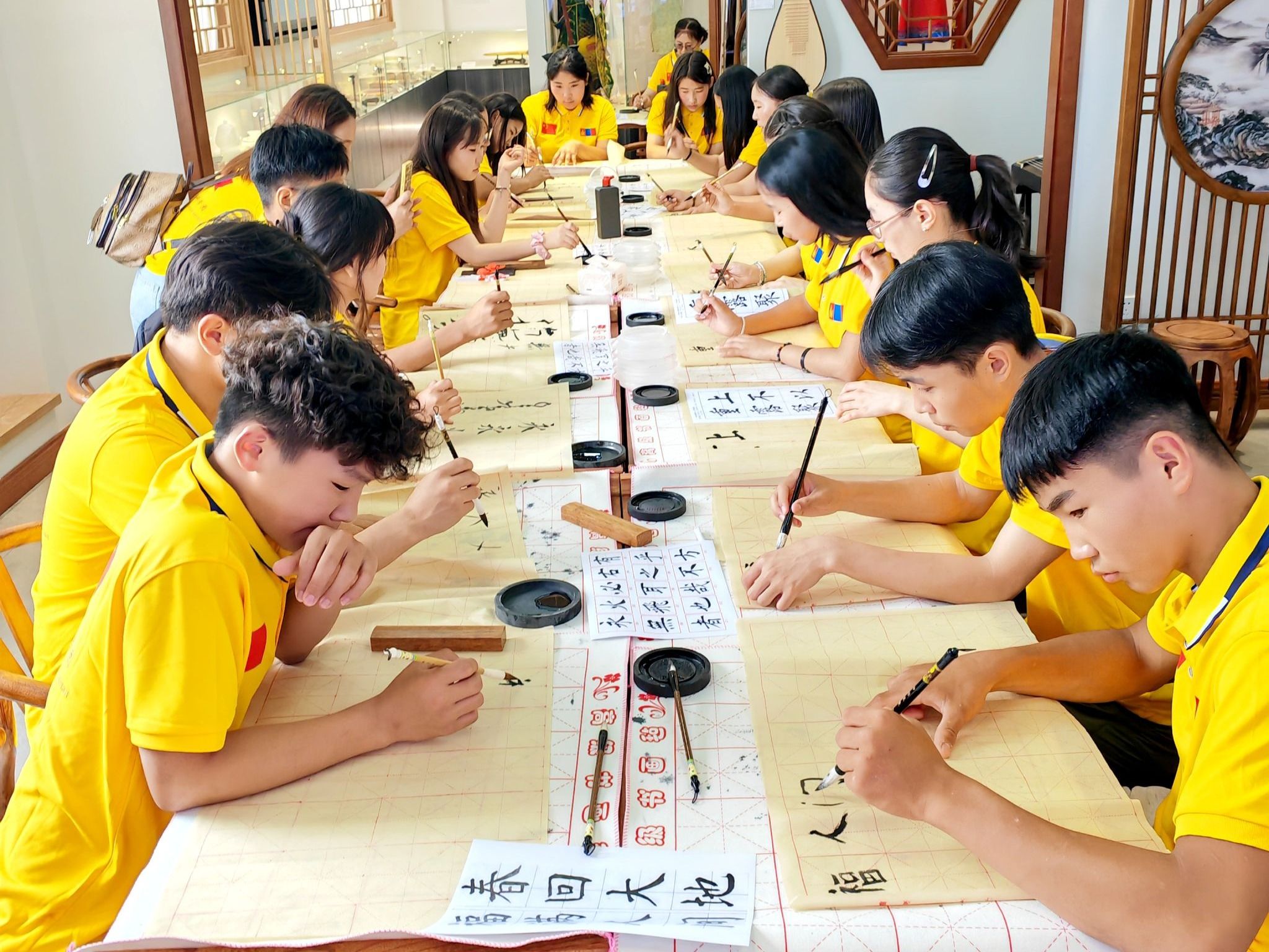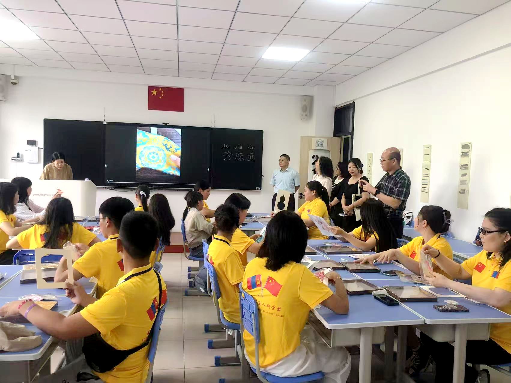 研学团先后参观了beat365官网生物标本馆与科学技术史博物馆,并在相关单位精心安排下,深入留学生教室、文化长廊,沉浸式体验传统漆扇制作、和林格尔非遗剪纸、非遗珍珠画、香包制作、书法、汉服装造等丰富多元的文化活动。这些活动不仅让蒙古国师生们在互动中感受到了中华文化的多元与包容,也为中蒙青少年搭建起一座文化交流的桥梁。