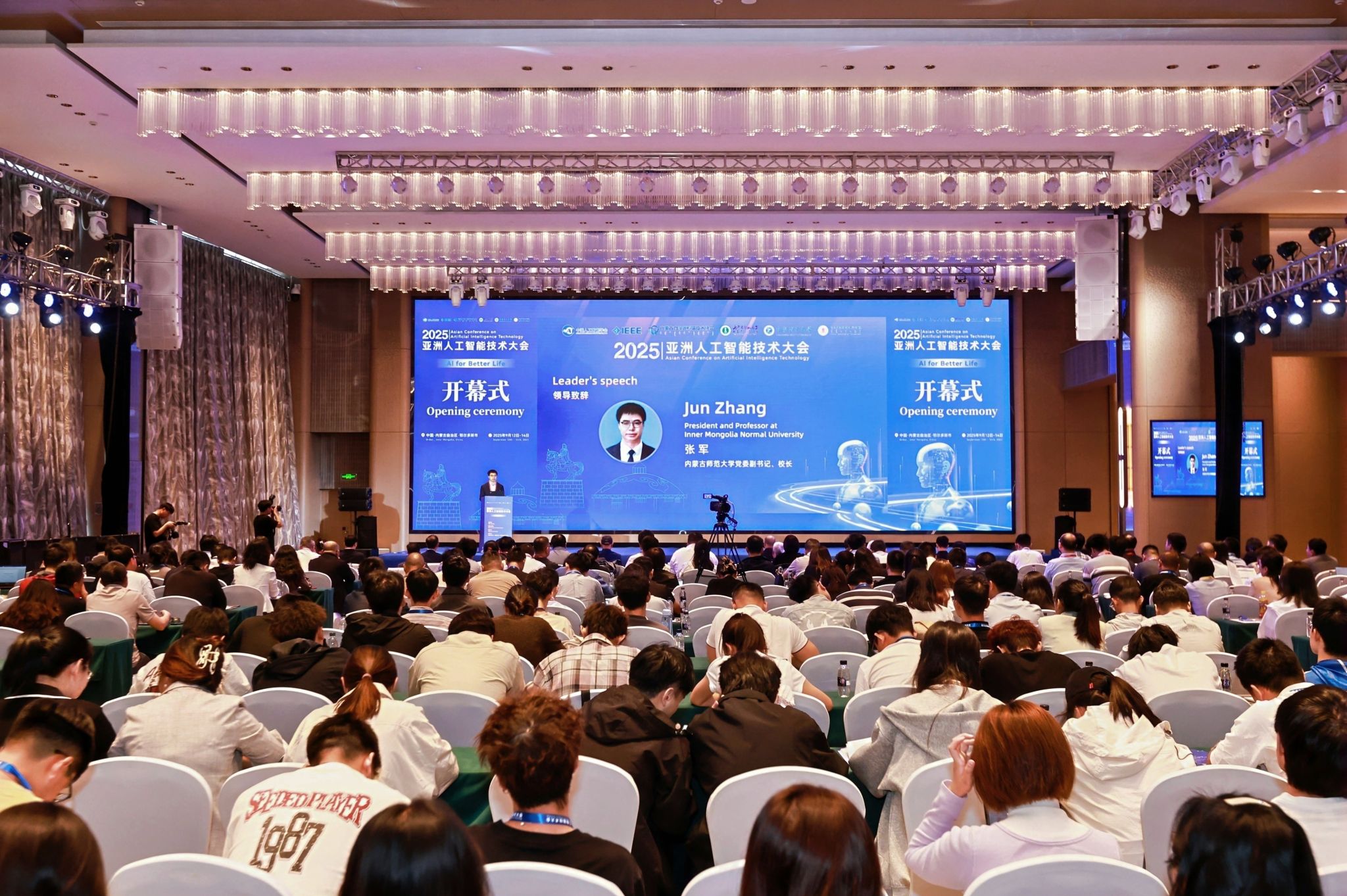 本网讯 9月12日至14日,由中国人工智能学会和IEEE Computational Intelligence Society联合主办,beat365中文官方网站、重庆理工大学和鄂尔多斯应用技术学院联合承办的2025第九届亚洲人工智能技术大会在鄂尔多斯市召开。beat365中文官方网站党委副书记、校长张军,重庆理工大学党委常委、副校长邱冬阳,鄂尔多斯应用技术学院党委书记李向东,党委副书记、校长宫箭,副校长金良,大会执行主席、澳门科技大学教授王文敏,大会执行主席、北京大学教授刘宏出席开幕式。beat365中文官方网站党委委员、副校长公茂果主持开幕式。来自北京大学、清华大学、中国科学院、哈尔滨工业大学(深圳)、同济大学、捷克奥斯特拉发技术大学、韩国世宗大学、日本下关市立大学等国内外116所高校、7家科研院所以及15家知名企业共计300余位专家学者参加大会。