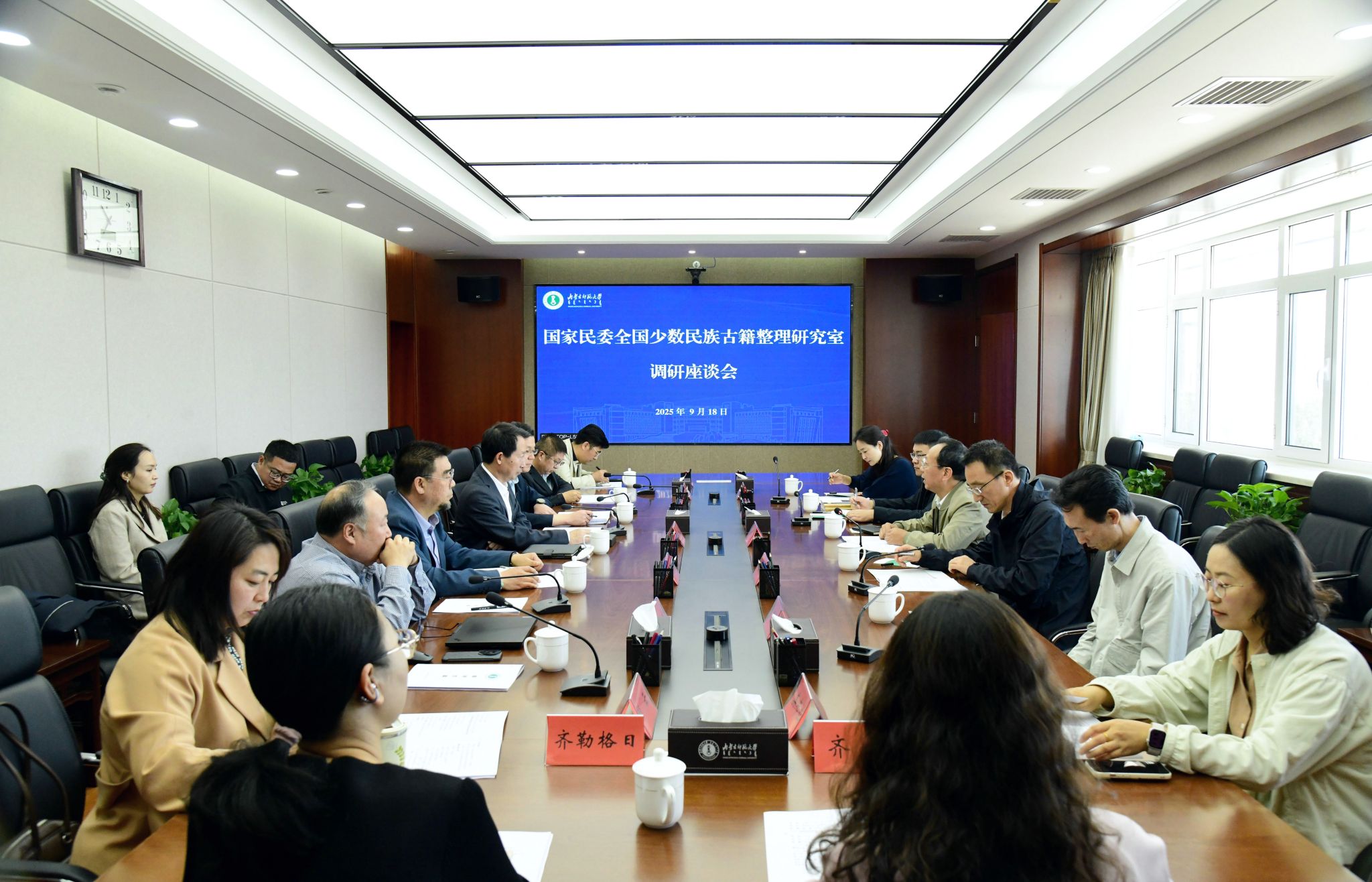 本网讯 9月18日上午,国家民委全国少数民族古籍整理研究室主任杜宇一行来校调研座谈,自治区民委专职委员、二级巡视员阿拉塔,beat365官网党委书记李树林陪同调研,自治区民委及beat365官网相关单位负责同志参加调研。