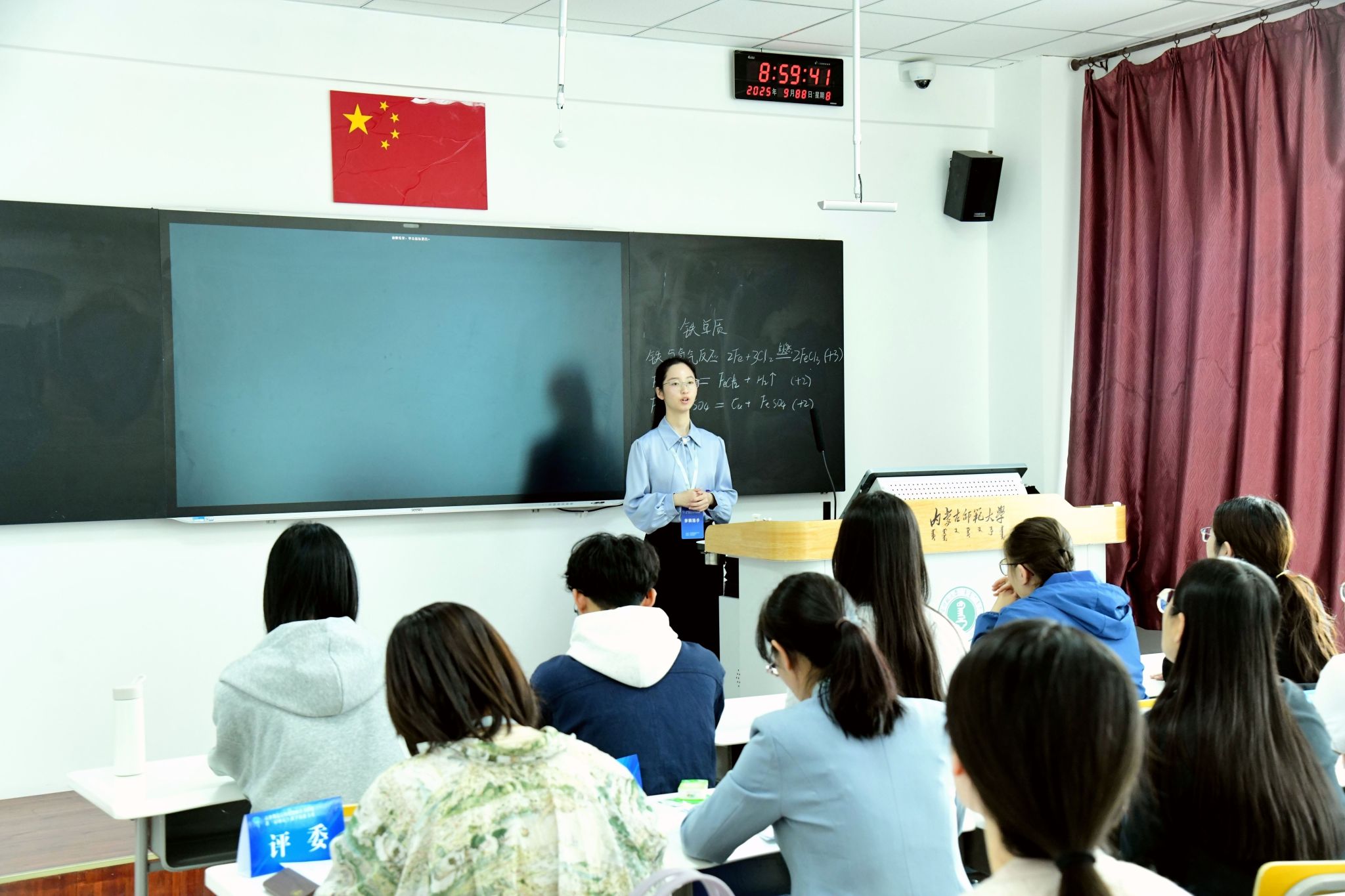 颁奖仪式上,李桂君、刘相飞、张军分别致辞。呼和浩特市教育教学研究中心中学教育教学研究室副主任贾娜和河北师范大学教师教育学院副院长李艳灵分别对文科组、理科组学生表现进行专业点评。竞赛评委会组长徐宝芳对本次大赛作总体点评,明确竞赛亮点与未来改进方向。