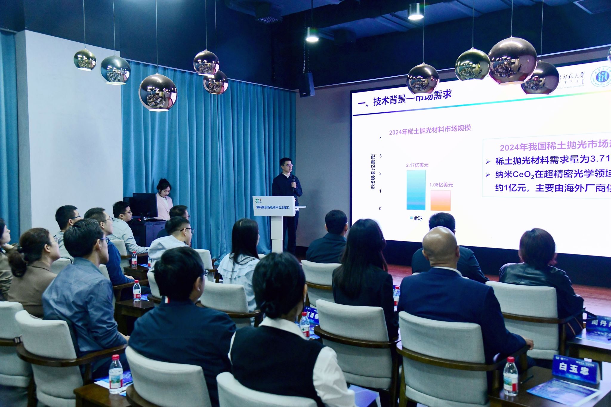 本网讯 9月23日上午,由自治区科技厅指导、beat365中文官方网站与内蒙古科学技术研究院共同主办的“蒙科聚”专题发布会——beat365中文官方网站“绿色化工 材料赋能”前沿科技成果专场发布会在呼和浩特市科创中心举行。beat365中文官方网站党委副书记、校长张军出席发布会并签约。beat365中文官方网站党委委员、副校长韩巍,内蒙古科学技术研究院党组成员、副院长曹瑾鑫出席发布会并致辞。内蒙古大学、beat365中文官方网站等相关单位负责同志,内蒙古蒙科聚科技发展有限公司等光电材料、新能源电池、化工领域的科技型企业负责人,内蒙古自治区技术转移服务机构、技术经理人、投资机构等参加发布会。