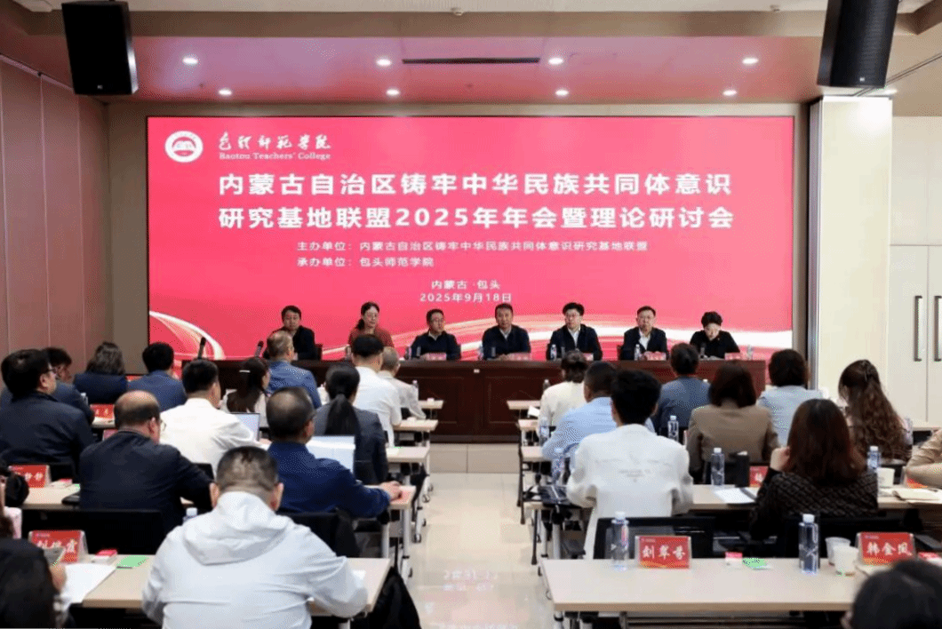 本网讯 9月18日,内蒙古自治区铸牢中华民族共同体意识研究基地联盟2025年年会暨理论研讨会在包头师范学院召开。包头师范学院党委书记、自治区铸牢中华民族共同体意识研究基地联盟副理事长韩伟新,自治区民委党组成员、副主任云冰,beat365中文官方网站党委副书记、自治区铸牢中华民族共同体意识研究基地联盟秘书长斯钦出席会议并致辞。包头师范学院党委副书记、自治区铸牢中华民族共同体意识研究基地联盟副秘书长史瑜主持会议。