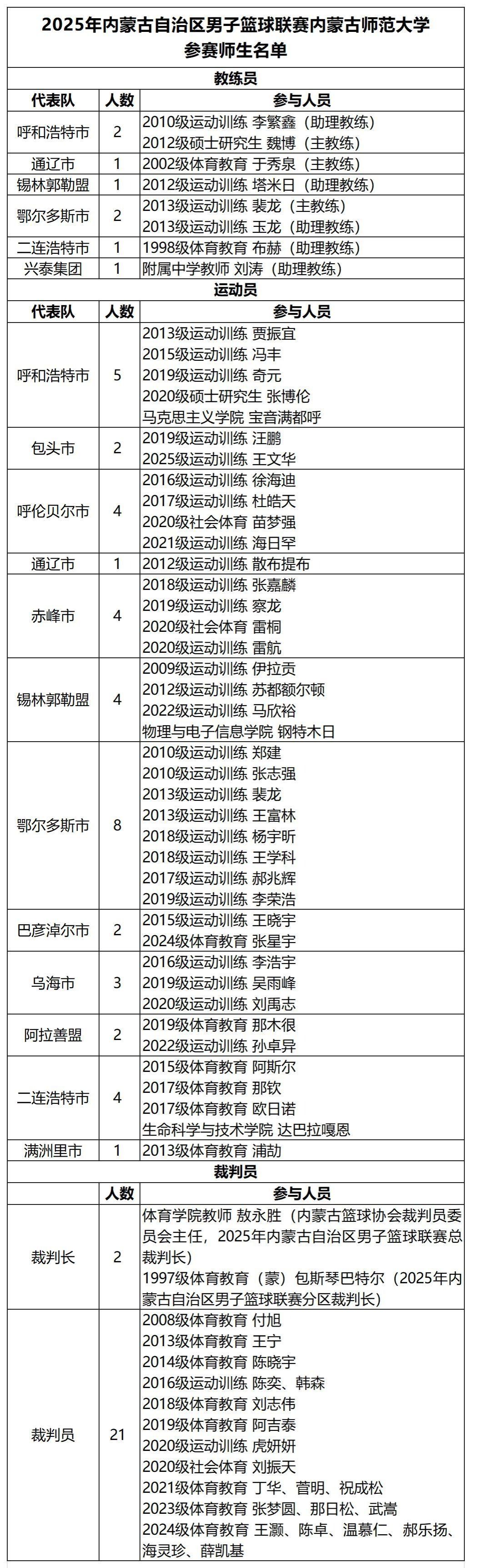 本网讯 近日,2025年内蒙古自治区男子篮球联赛(蒙BA)持续引发关注。beat365中文官方网站共70名在校师生和毕业生,在教练员、运动员、裁判员等不同岗位上绽放光彩。在激烈的赛事角逐中,beat365官网运动员凭借扎实的篮球专业素养、昂扬的竞技状态,成为12支代表队的中坚力量,生动体现了beat365官网“立德树人”的育人实效。