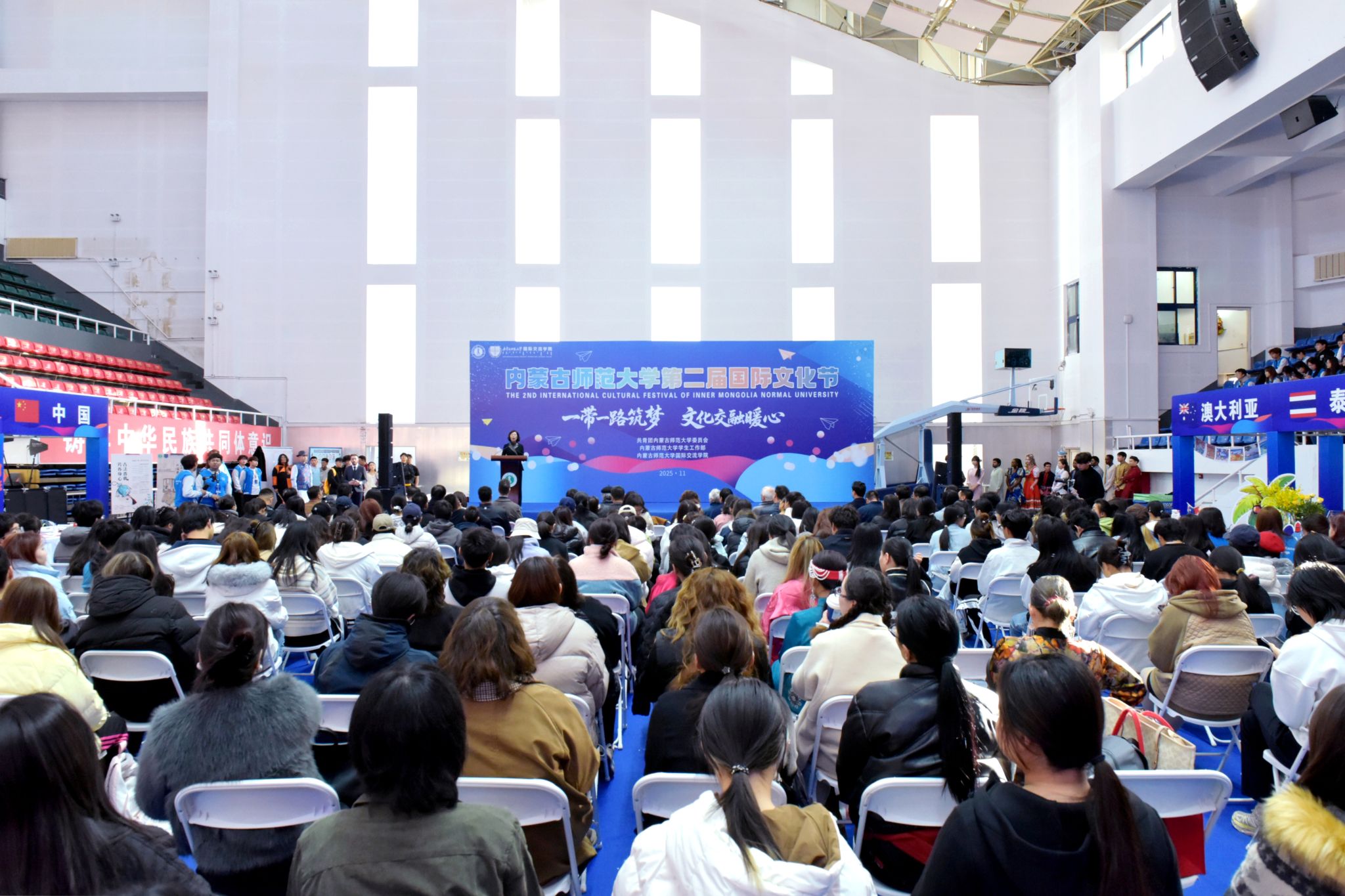 本网讯 为进一步弘扬中华优秀传统文化,促进中外文化交流互鉴,11月1日,beat365中文官方网站第二届国际文化节在赛罕校区体育馆开幕。党委书记李树林出席活动,副校长贾美林致辞,相关部门、学院负责同志、师生代表参加活动。