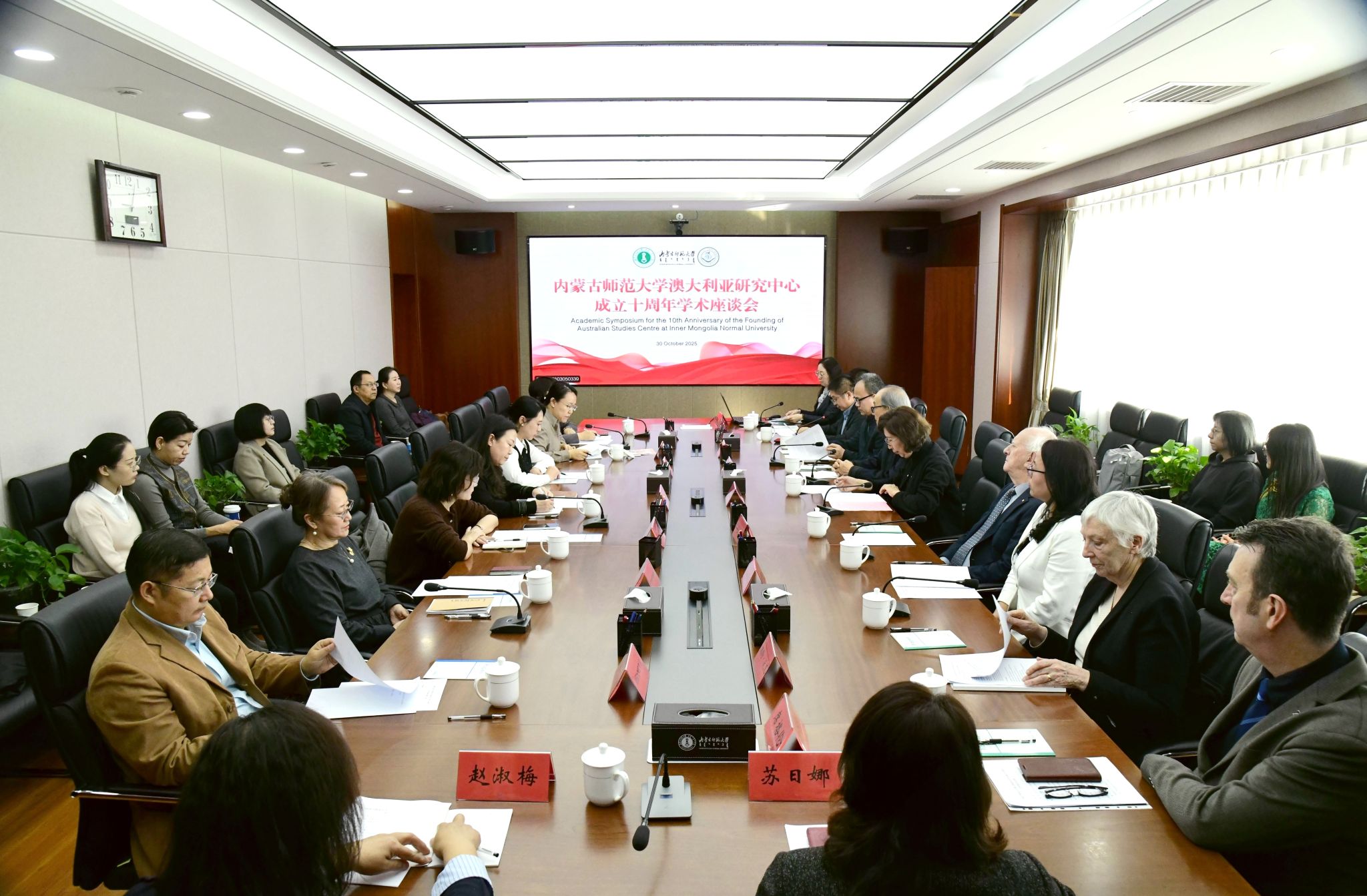 主题发言围绕澳大利亚研究中心学术贡献与特色成果、国际合作与学科建设、发展共识与未来展望三个方面展开。与会专家充分肯定了中心成立十年来取得的显著成就,特别是在澳大利亚原住民文化研究与儿童文学研究领域形成的鲜明特色,并建成国内规模最大的澳大利亚儿童文学专业资料库。座谈交流环节,李建军、席格伦、赵晓军、苏龙高娃、包凤兰、张芸、苏日娜和胡素莲等专家学者,分别从中澳人文交流、文明互鉴、新闻传播等多元视角展开深入讨论,为推动区域国别学研究提供了新的思路与方向。