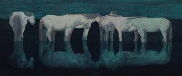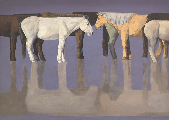 作品名称:蒙古马 作者:胡日查 尺寸:110×240cm,99×139cm 材质:油画