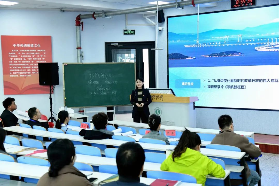 本届大赛以“以赛促教、以赛促研、以赛促建”为宗旨,有效激发了青年教师更新教育理念、钻研教学方法、投身教学改革的主动性与创造性,不仅搭建了展示风采、交流互鉴的优质平台,更为学校深化教育教学改革、提升人才培养质量注入了蓬勃新动能。比赛形式多样、特点鲜明,一是强化教师数字素养培育,积极推动人工智能、大数据等新一代信息技术与教育教学深度融合,赋能课堂教学提质增效;二是着力构建“大思政”育人格局,将思政教育有机融入专业教学全过程,实现知识传授、能力培养与价值引领的同频共振;三是鲜明树立“教学学术”导向,鼓励教师将科研成果转化为优质教学资源,推动科研反哺教学、教学促进科研的良性循环。