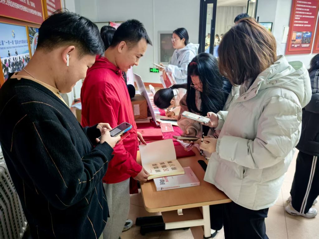 在互动体验环节,前来交流的青年学子们纷纷扫码下载“学习强国”APP,体验竞赛“答题”赢取“强国文创”,在“双人对战”“四人赛”答题比赛中,你来我往高低难分,不到最后一题胜负难定的求胜欲考验着对战各方的知识储备、心理素质、应变能力,既充满趣味又略显紧张。刚体验完“双人对战”并胜出的2024级马克思主义学院法学专业张雅妮同学高兴地说道:“答题太有意思了,特别是‘双人对战’,让我既增长了知识,又体验了竞赛的乐趣,而且这种小型的竞赛也便于我跟同学随时随地比拼。”