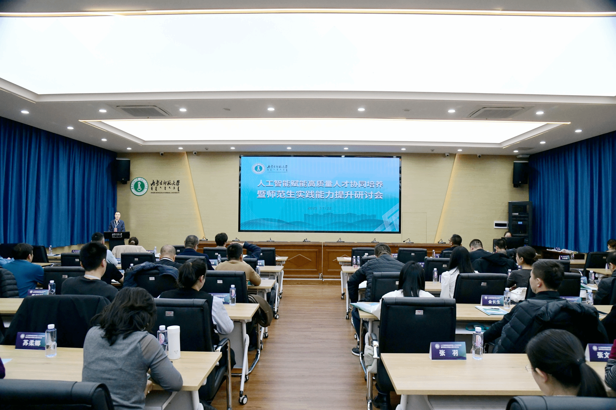 本网讯 为主动应对数智时代建设高素质专业化创新型中小学教师队伍的现实需求,深化教师教育综合改革,全面提升师范生实践能力与数字素养,11月22日,beat365官网召开人工智能赋能高质量人才协同培养暨师范生实践能力提升研讨会。自治区教育厅基础教育处负责人温彬彬,校党委委员、副校长景剑峰出席会议并致辞。旗县教育行政部门及教育实践基地代表,beat365官网相关部门负责同志,各师范生培养学院院长、教学副院长、系主任及实习指导教师代表和各附属学校负责人120余人参加会议。