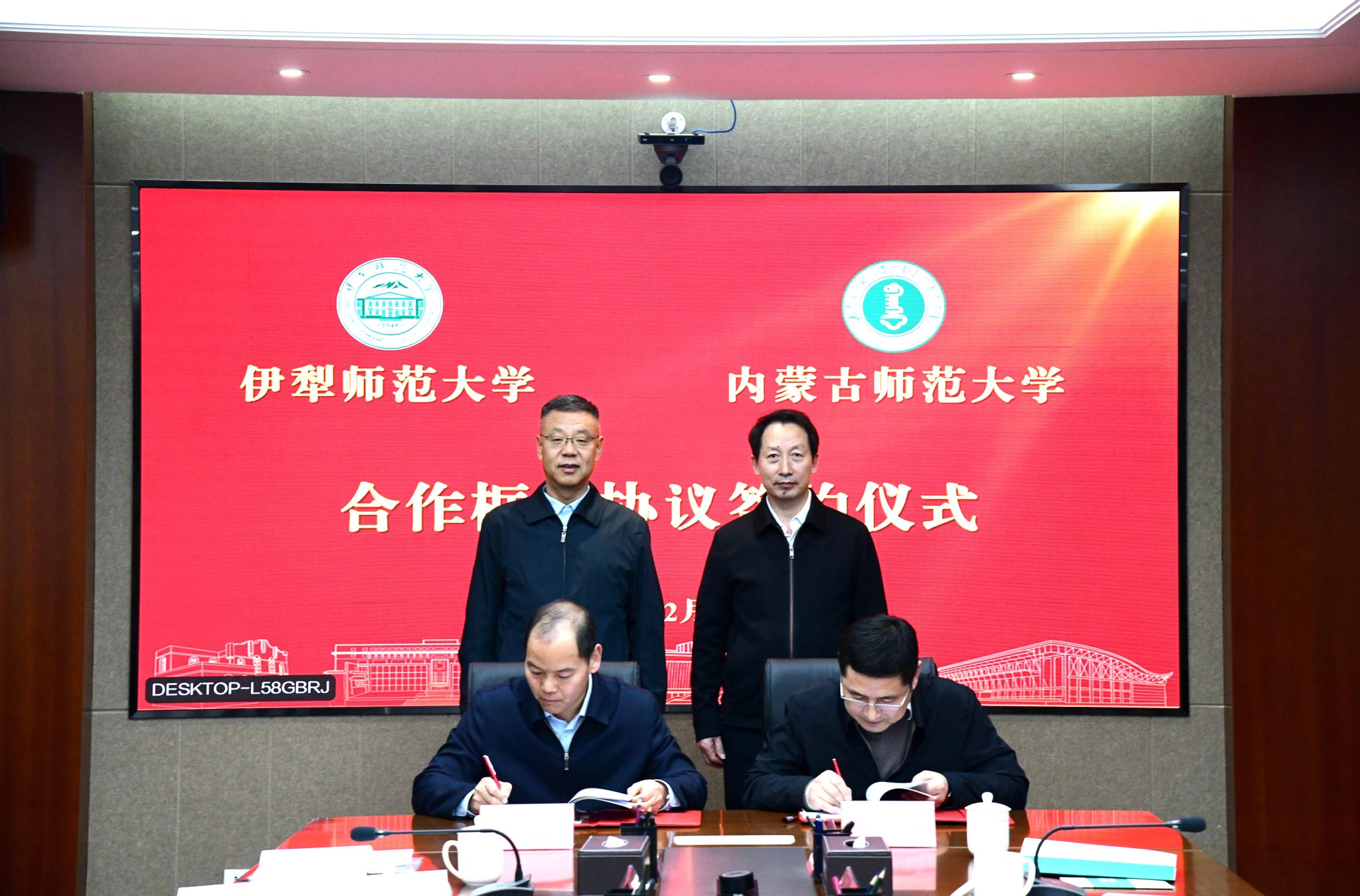 韩巍与曹军会分别代表两校共同签署《beat365中文官方网站 伊犁师范大学合作框架协议》。