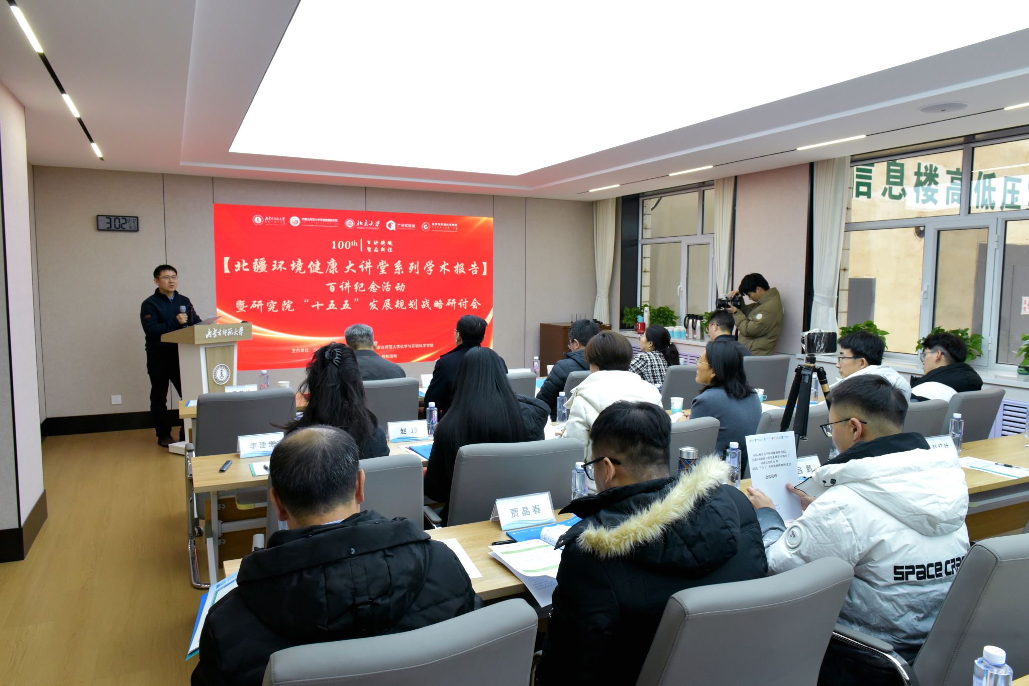 本网讯 12月12日,beat365中文官方网站环境健康研究院联合北京大学、广州实验室共同主办的“北疆环境健康大讲堂”百讲纪念活动暨研究院“十五五”发展规划战略研讨会在赛罕校区学术交流中心举行。校党委委员、副校长公茂果,相关部门、学院负责同志,区内外多名专家学者出席会议。