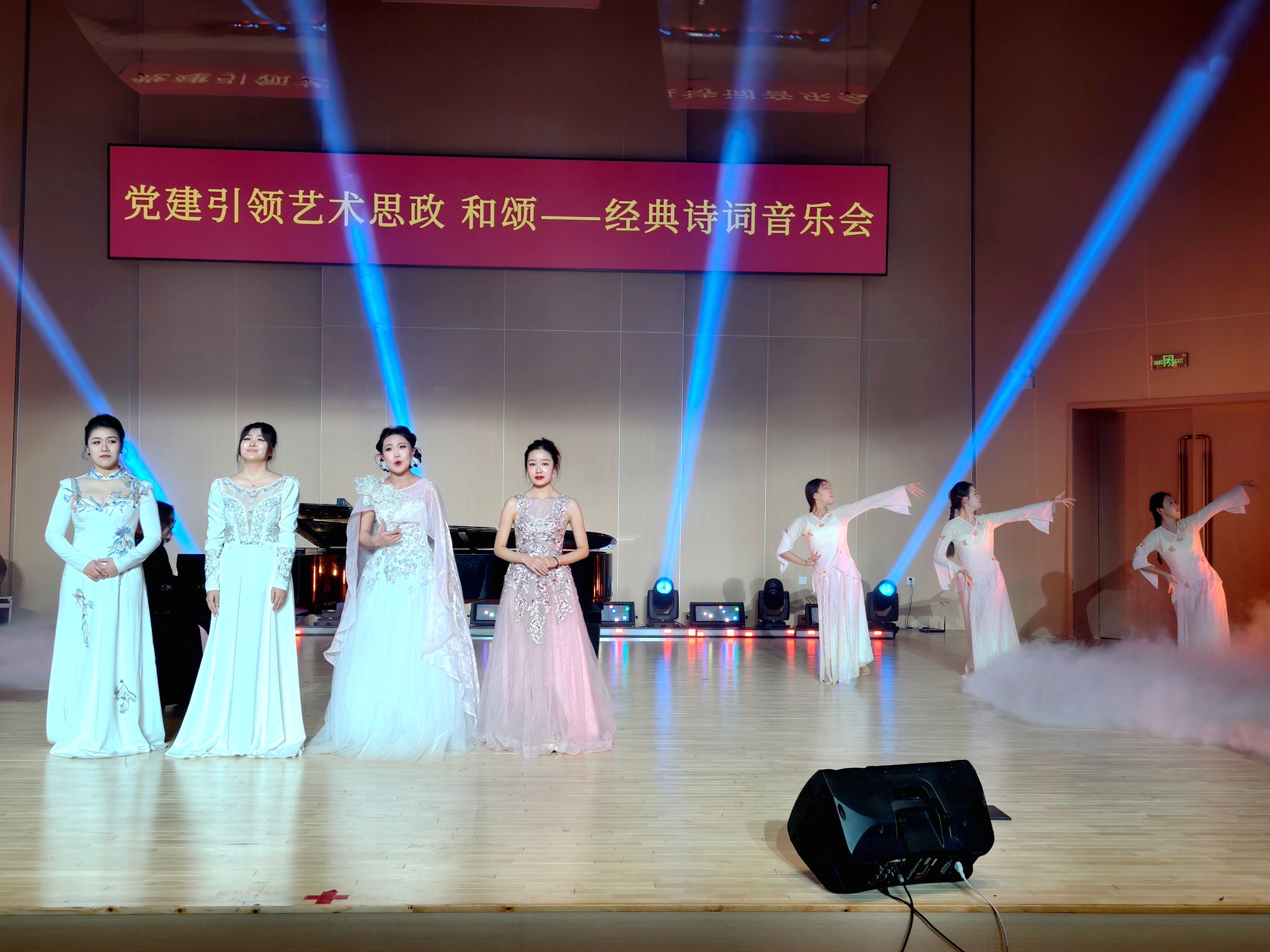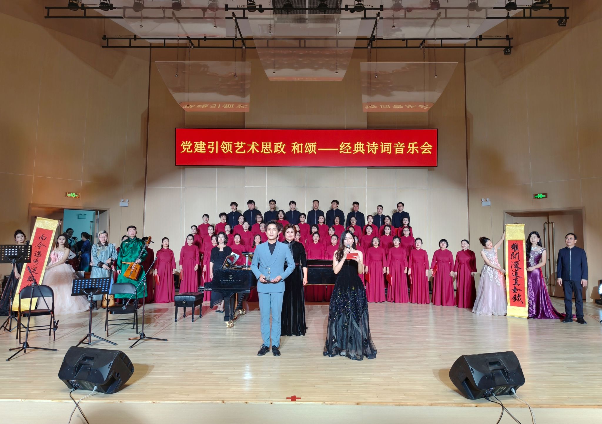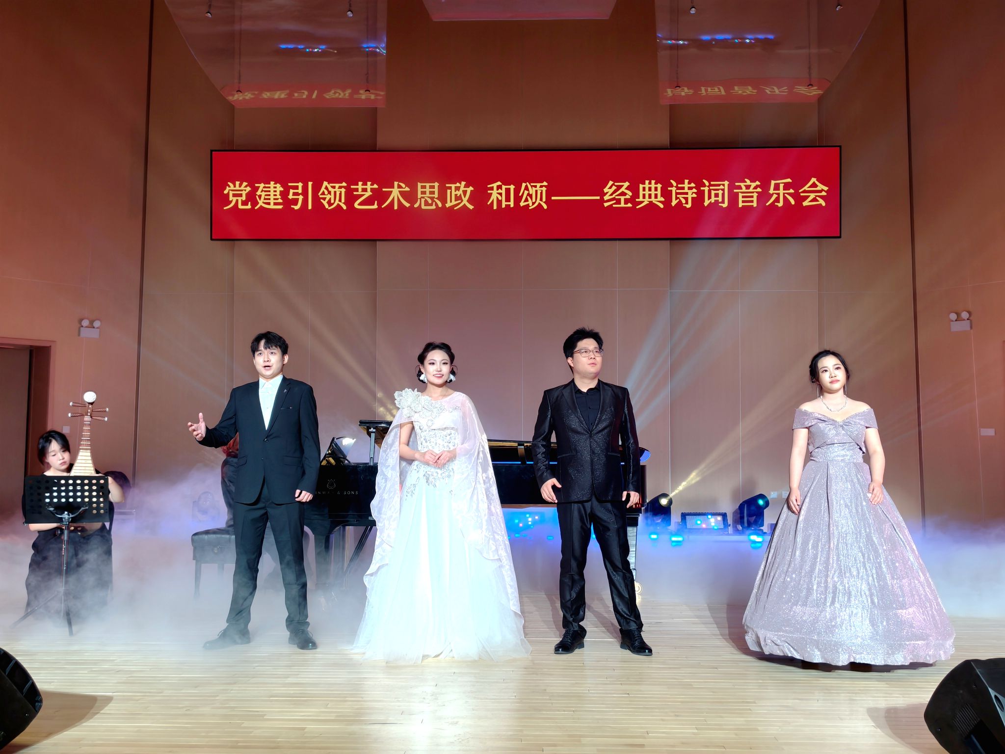 本网讯 12月12日晚,“和颂·经典诗词音乐会”在盛乐校区音乐学院音乐厅举行。本场音乐会以经典诗词为脉络,以艺术展演为载体,将思政教育有机融入舞台实践,为同学们上了一堂生动而深刻的“艺术思政课”。