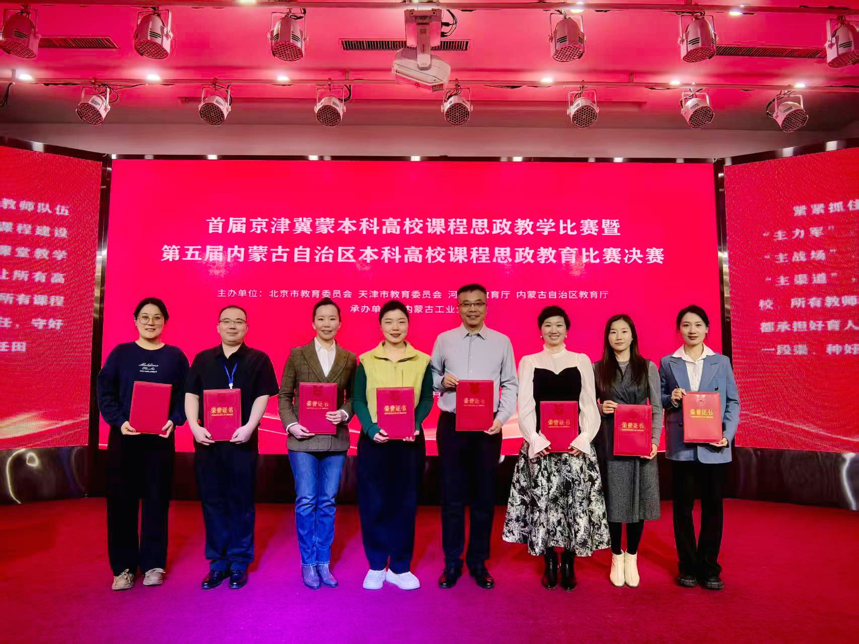 本网讯 12月21日,由北京市教育委员会、天津市教育委员会、河北省教育厅、内蒙古自治区教育厅联合主办的首届京津冀蒙本科高校课程思政教学比赛暨第五届内蒙古自治区本科高校课程思政教育比赛决赛在呼和浩特市举行。beat365官网参赛教师荣获特等奖1项、一等奖2项、二等奖5项。beat365官网党委委员、副校长公茂果出席决赛颁奖典礼。