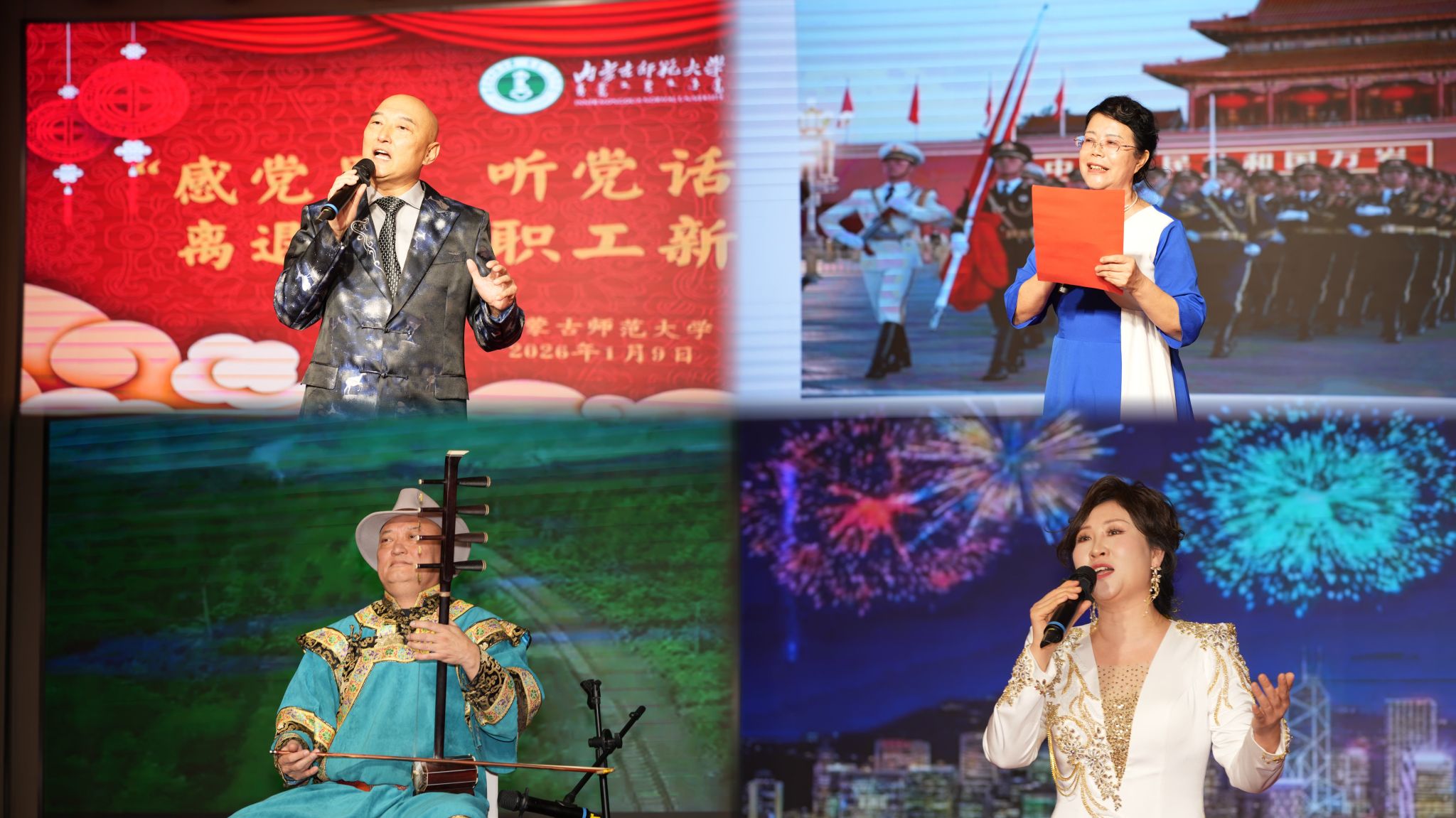 茶话会上,各类节目轮番登场、精彩纷呈,自治区老战士合唱团、自治区四胡协会也选送了节目,充分展现了离退休老同志们多才多艺、积极向上的精神风貌,也为新一年学校事业的蓬勃发展凝聚了人心、鼓舞了士气。