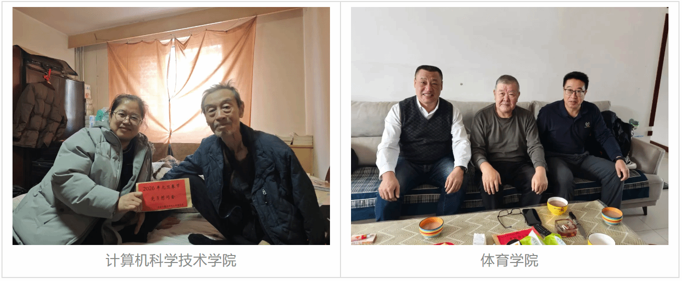 各单位慰问队伍通过和老同志们共忆传统、畅谈发展,一起回顾学校艰苦创业的峥嵘岁月和蓬勃发展的奋斗历程,感慨学校近年来在人才培养、学科建设、科技创新、社会服务等方面取得的显著成就。真诚的交流让老一辈教育工作者的奋斗精神与当代师大人同心同行的信念紧密相连,进一步增强了教职员工的归属感与凝聚力。同时,各学院还看望慰问了寒假留校学生,详细了解大家的学习安排与生活情况,叮嘱同学们要张弛有度,在专注科研学业的同时,加强锻炼、保持健康体魄,度过一个平安祥和、充实愉快的假期。