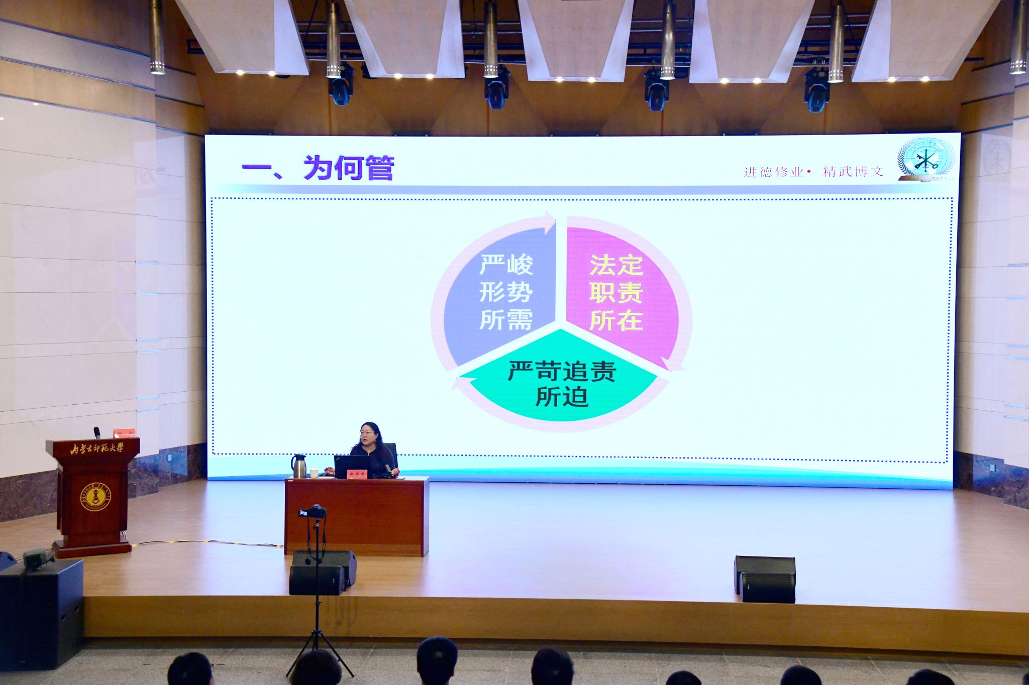 会后,中国人民警察大学防火工程学院赵秀雯受邀作了题为“依法治火 权责明晰”的专题讲座,党委副书记斯钦主持讲座。赵秀雯从安全管理职责的角度出发,阐述了“三管三必须”的重要性,结合专业知识和相关案例,为大家上了一堂生动的消防安全课。