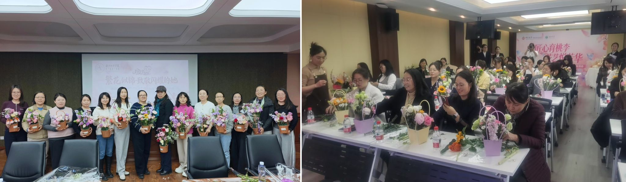 与此同时,节日温情遍布校园。各基层分会积极响应,结合自身实际,开展了形式多样的庆祝活动。教育学院、体育学院举办趣味体育活动,增强凝聚力;马克思主义学院举办茶话会、设计学院开展办公室肩颈放松操练习,关注女教职工职业健康;经济管理学院、旅游学院、数学科学学院、生命科学与技术学院举办花艺活动,展示艺术才华;外国语学院举办棋牌雅集活动,放松身心;物理与电子信息学院开展节日慰问活动,传递组织温暖;化学与环境科学学院开展青年教师风采展示活动,展现青年力量;地理科学学院开展非遗三饮茶道体验活动,涵养文化自信。