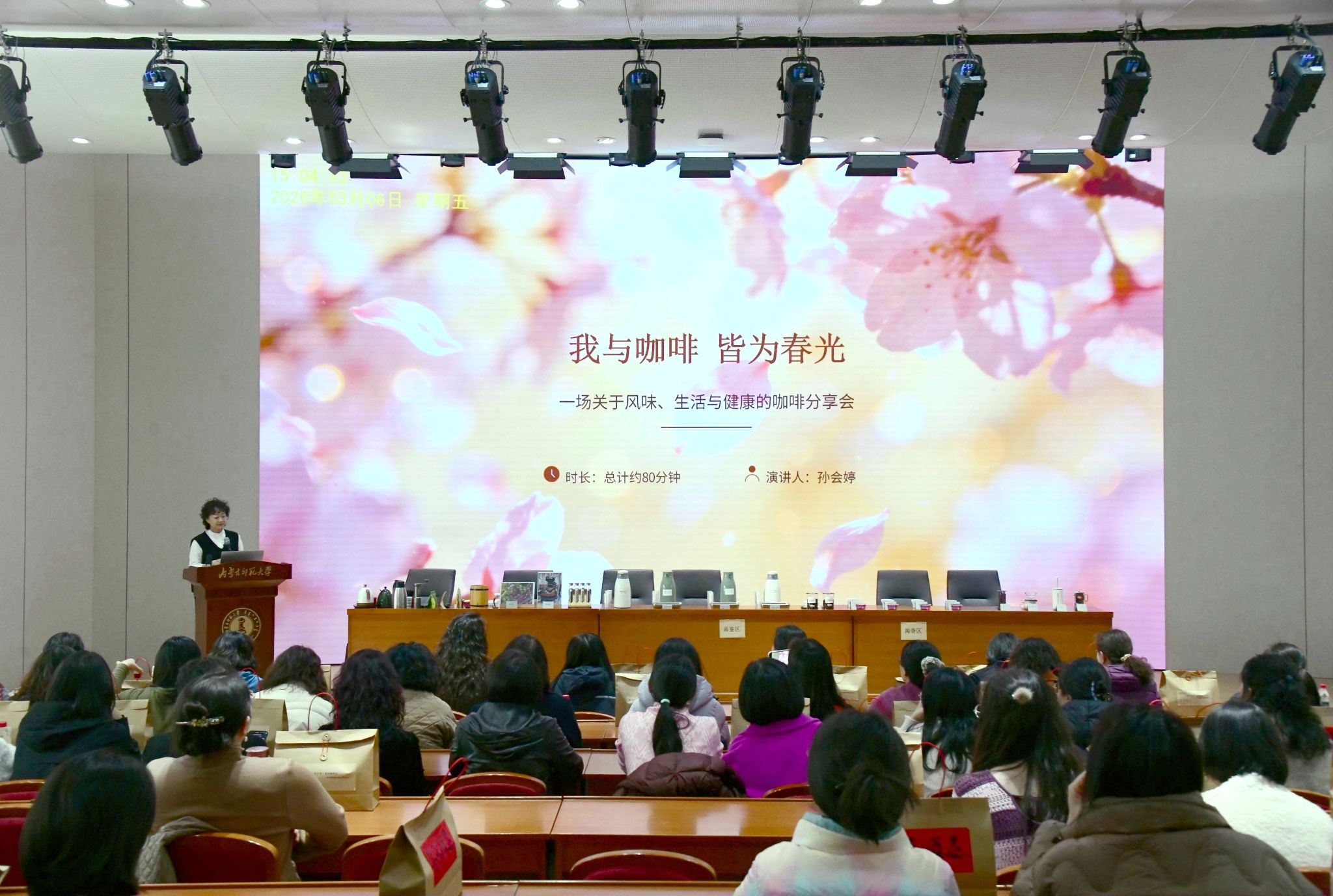 本网讯 为庆祝第116个“三八”国际劳动妇女节,进一步丰富beat365官网女教职工精神文化生活,传递学校的温暖关怀与节日祝福,3月6日下午,工会在赛罕校区学术交流中心信息楼报告厅精心策划并举办了“‘啡’凡她力量 杏坛映流光”咖香焕能主题庆祝活动。260余名女教职工欢聚一堂,醇厚咖啡香气与欢声笑语相融,勾勒出春日里独属于女性的优雅与温情。