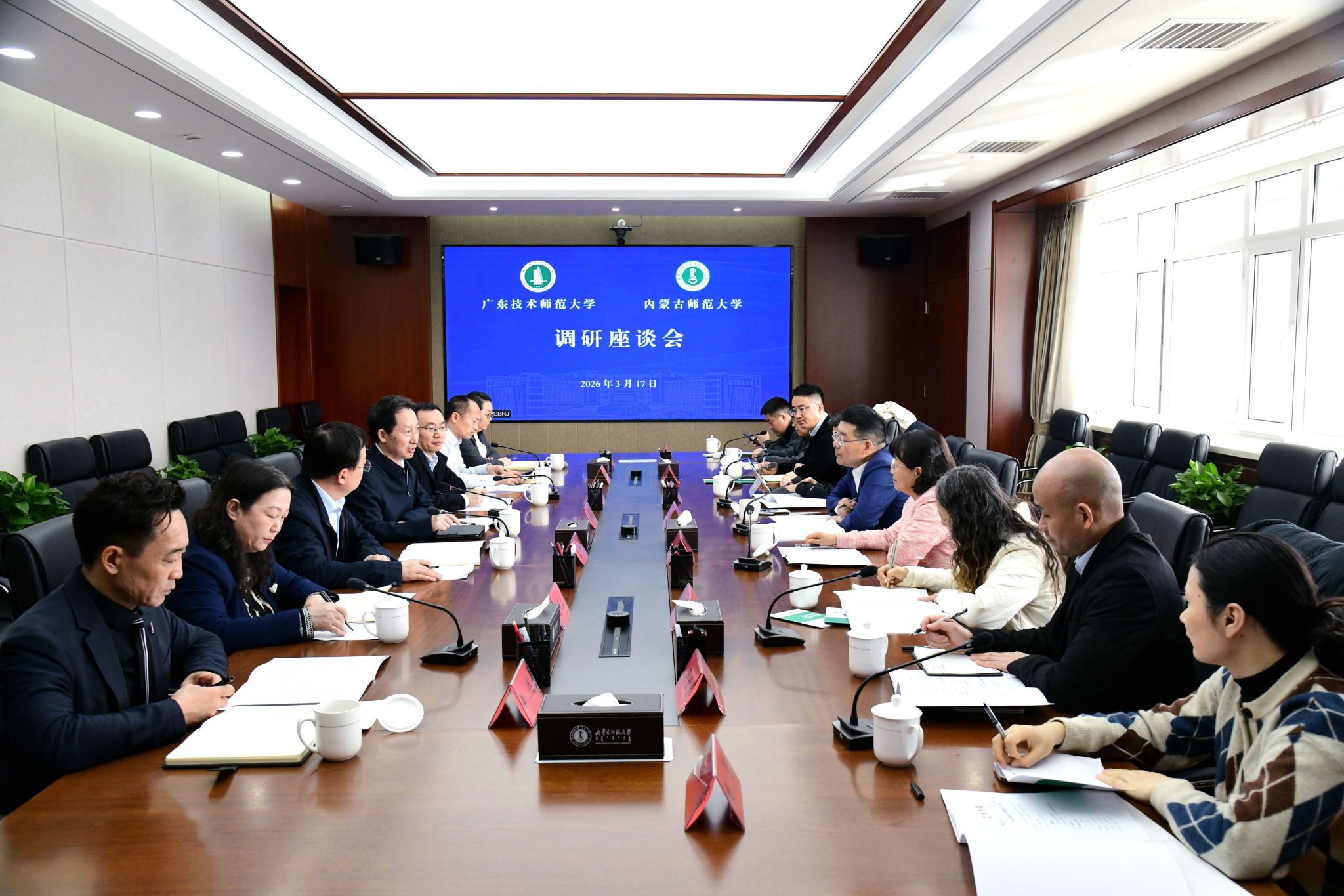 李树林代表学校对王兵一行的到访表示热烈欢迎,并介绍了beat365官网办学历史、学科特色、人才培养以及服务地方经济社会发展等方面的情况。王兵介绍了广东技术师范大学的发展历程和办学理念,希望通过此次调研深入了解beat365官网在“十五五”规划布局,民族学、教育学、心理学学科建设等方面的思路与举措。双方一致认为,两校虽地处南北,但同为师范院校,在服务国家教育现代化、培养高素质人才方面肩负着共同的时代使命。广东技术师范大学深耕粤港澳大湾区,在职业教育、技术师范人才培养方面走在前列;beat365中文官方网站立足祖国北方,在教师教育、铸牢中华民族共同体意识研究和实践等方面积淀深厚。未来,双方将充分发挥区域互补效应和师范院校办学优势,聚焦职业教育与师范教育协同创新、铸牢中华民族共同体意识研究和实践、跨区域人才联合培养等方面深化务实合作,共同探索新时代师范院校高质量发展新路径。