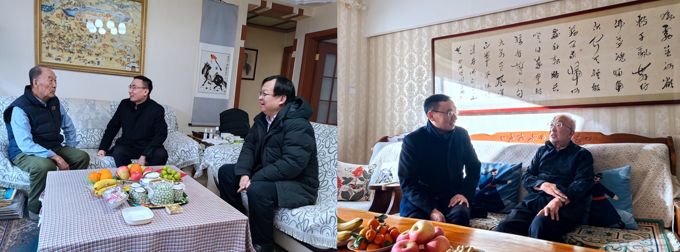 1月19日,学校领导李树林、张军、斯钦、贾美林、韩巍、赵晓东、公茂果、景剑峰专程探望并慰问老领导和老干部,与老同志们聊家常、问需求、解疑难。交谈中,校领导详细了解老同志们的生活、身体和家庭状况,诚挚感谢他们为学校事业发展作出的贡献,细致汇报学校过去一年开展的重点工作及取得的成绩,并悉心听取老同志们对学校各项工作的意见建议。校领导表示,老领导、老干部、老教师是学校的宝贵财富,学校每一项成绩的取得,都离不开老同志们打下的坚实基础、积累的深厚底蕴。希望老同志们保重身体,继续发挥余热,为学校的改革发展建言献策,为学校内涵式高质量发展凝聚强大合力。学校也将一如既往地关心老同志们的生活,全力以赴做好服务保障工作,让老同志们安享晚年。