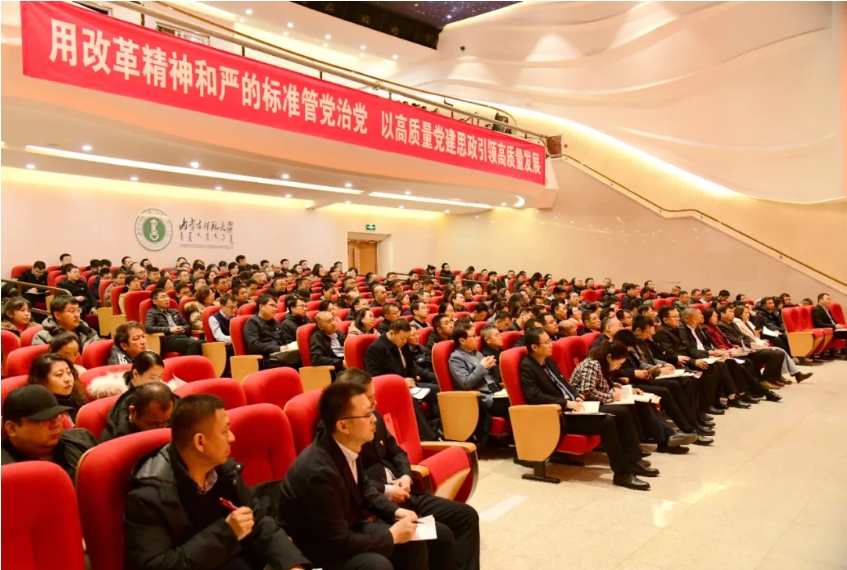 本网讯 为深入学习贯彻习近平总书记关于党的建设的重要思想、关于党的自我革命的重要思想,全面落实第二十届中央纪委四次全会、自治区十一届纪委五次全会精神、第二十八次全国高校党的建设工作会议精神,2月27日上午,beat365官网在盛乐校区音乐厅召开2025年党的建设暨全面从严治党工作会议。学校领导李树林、张军、斯钦、贾美林、韩巍、赵晓东、公茂果、景剑峰出席会议。各职能部门副科级以上干部,各学院领导班子成员,团总支、学就办、办公室、教务办负责同志参加会议。