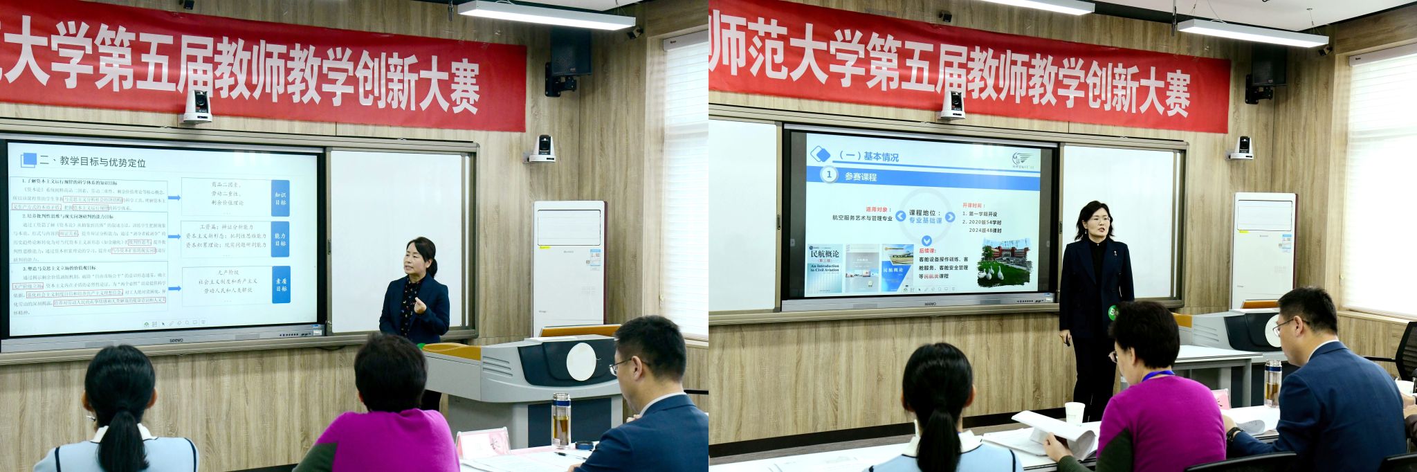 比赛中,参赛教师围绕课程概述、痛点分析、创新举措及成效等方面进行汇报。评委组从教学理念、内容、方法和效果等维度进行综合评分,并对每位教师提出优化建议。