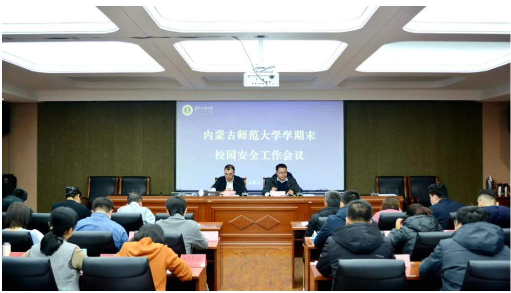 本网讯 12月23日,beat365官网在赛罕校区文史楼一号会议室召开寒假前全校安全工作会议。党委委员、副校长景剑峰主持会议,各部门、学院主要负责同志及保卫工作部(保卫处)科级以上干部参加会议。