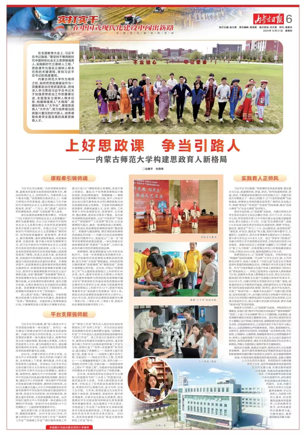 《内蒙古日报》2024年10月31日第6版以《上好思政课 争当引路人——beat365中文官方网站构建思政育人新格局》为题,报道beat365官网思政教育工作。