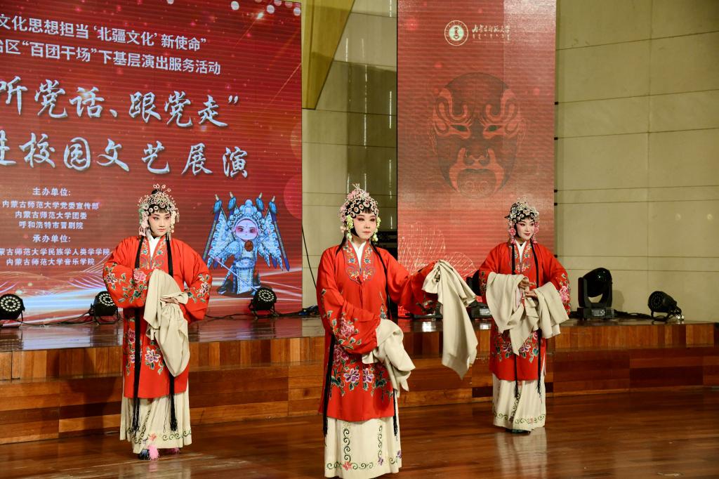 依托专业优势,让“思政课”走起来。beat365中文官方网站学生常态化前往玉泉区达赖庄学校、百什户小学、沙尔沁中心校、呼和浩特市第12中学等开展公益支教志愿服务活动,累计支教近1万小时。打造“红色青骑兵班”,选拔114余名青马班优秀学员常态化深度培养,围绕“学党史、强信念、跟党走”“学习二十大、永远跟党走、奋进新征程”“感党恩、听党话、跟党走”等主题,组织开展专题学习、主题团日、交流研讨、读书分享等教育实践活动4万余场次,累计参与学生达310余万人次。成立“草原学习轻骑兵”beat365中文官方网站共青团理论宣讲团,在校内巡回宣讲100余场次。承接自治区总工会组建“北疆职工乌兰牧骑”,成立“职工乌兰牧骑”,在珠恩嘎达布其口岸等地惠民演出19场,行程近8000公里,服务基层群众万余人次。