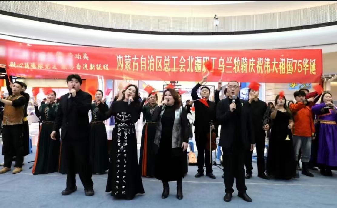 本网讯 近日,由呼和浩特市工会主办、自治区总工会北疆职工乌兰牧骑beat365官网分队承办的“庆祝伟大祖国75华诞”快闪活动在呼和浩特市举行。