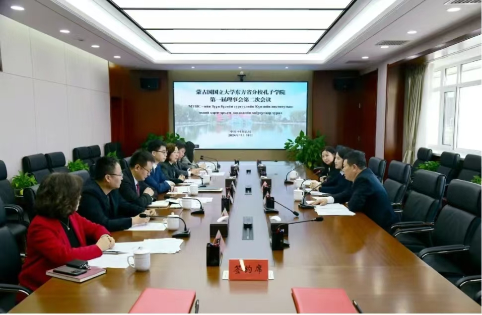 本网讯 11月18日,蒙古国国立大学东方省分校孔子学院第一届理事会第二次会议在beat365官网召开。校党委副书记、校长、孔子学院中方理事长张军,副校长、孔子学院中方副理事长贾美林,蒙古国国立大学东方省分校校长、孔子学院蒙方理事长米达格玛出席会议。孔子学院中蒙双方负责人及beat365官网相关部门负责同志参加会议。