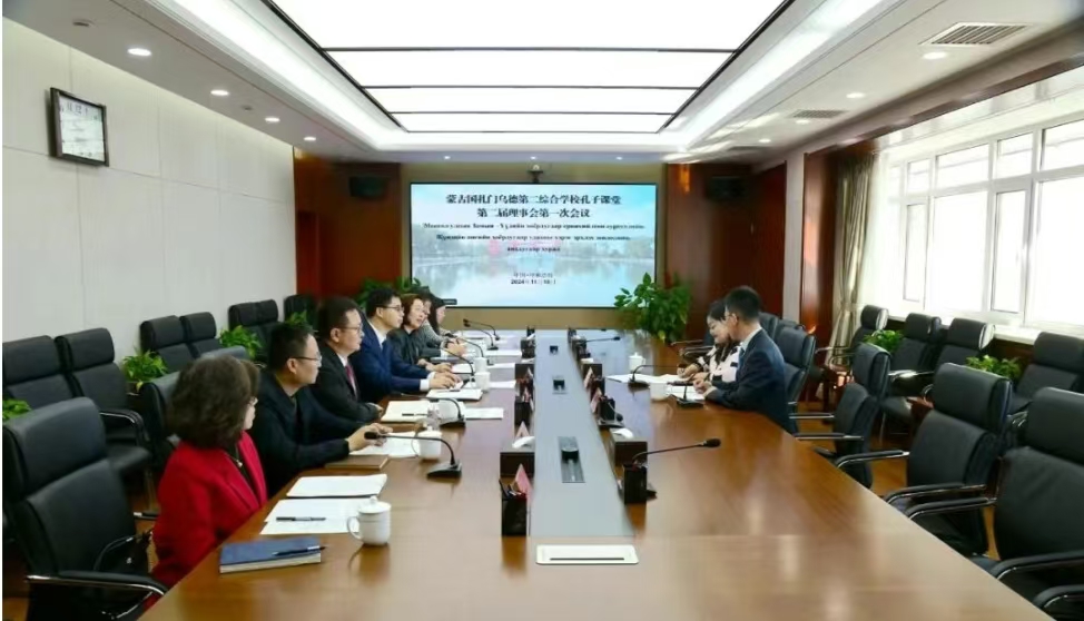同日,蒙古国扎门乌德市第二综合学校孔子课堂第二届理事会第一次会议在beat365官网召开。校党委副书记、校长、孔子课堂中方理事长张军,副校长、孔子课堂中方副理事长贾美林,蒙古国扎门乌德市第二综合学校校长、孔子课堂蒙方理事长巴图图雅出席会议。孔子课堂中蒙双方负责人及beat365官网相关部门负责同志参加会议。