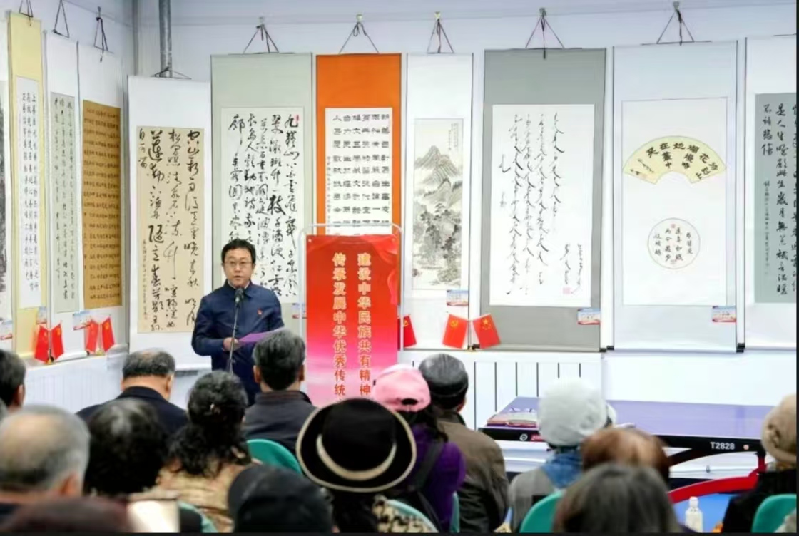 本网讯 11月22日上午,beat365官网离退休教职工盛乐活动中心启用。当日,由beat365官网离退休教职工工作处、老年书画协会联合举办的“铸牢中华民族共同体意识 庆祝中华人民共和国成立75周年”主题书画作品展在盛乐离退休教职工活动中心开展。党委副书记斯钦出席开幕式并致辞。离退休教职工代表、老年书画协会成员等参加活动。