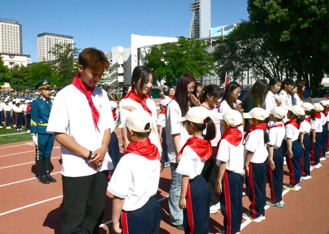 活动中,锡林南路小学的同学们还举行了入队仪式。小朋友们迎来人生中一次意义重大、激动人心的时刻,他们戴上鲜艳的红领巾,光荣地加入中国少年先锋队。