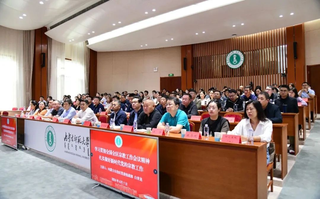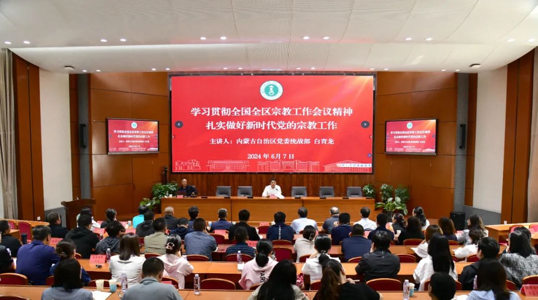 张海峰表示,做好宗教工作,是维护学校稳定和推进学校改革发展的重要保证。本次专题讲座内容翔实,主线清晰,具有很强的针对性,为我们进一步学习贯彻落实宗教政策法规、依法加强宗教事务管理、做好全校宗教工作指明了方向。全校各级干部要以习近平新时代中国特色社会主义思想为指导,以铸牢中华民族共同体意识为工作主线,完整、准确、全面领会和贯彻新时代党的宗教工作理论和方针政策,把学习宣传贯彻党的二十大和二中全会精神同学习贯彻习近平总书记关于宗教工作的重要论述、全国全区宗教工作会议精神紧密结合起来,切实把思想和行动高度统一到党中央和自治区党委决策部署上来。要加强组织领导、狠抓责任落实,不折不扣推动习近平总书记重要讲话和全国全区宗教工作会议精神入心入脑、见行见效,不断提高新时代beat365官网宗教工作水平,奋力书写中国式现代化内蒙古篇章。