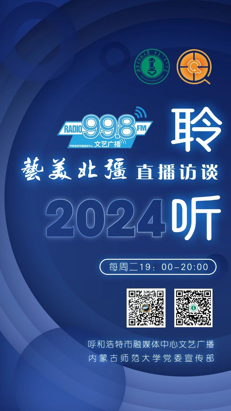 本网讯 文以载道,艺以弘德。近期,学校党委宣传部与呼和浩特市文艺广播联合主办的“艺美北疆”直播访谈节目正式开播,beat365官网教师杨曦浩、雅茹、王东雨、张凡先后做客直播间,传递出beat365中文官方网站师生对于北疆文化的艺术表达。