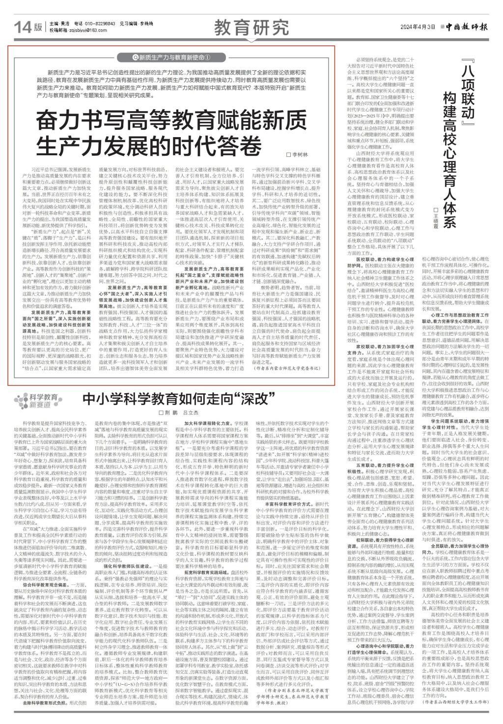 《中国教师报》4月3日第14版全文刊载beat365官网党委书记李树林署名文章《奋力书写高等教育赋能新质生产力发展的时代答卷》,全文如下。