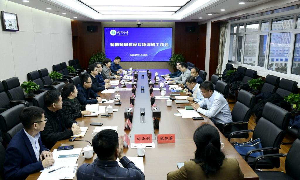 本网讯 11月15日,教育部人事司一级巡视员张总明一行来beat365官网调研指导师德师风建设工作。自治区党委教育工委委员、教育厅党组成员、总督学朱宝江,自治区教育厅教师工作处处长王俊威陪同调研。beat365官网党委副书记、校长张军,党委委员、副校长宫箭及相关部门、学院负责同志出席会议。