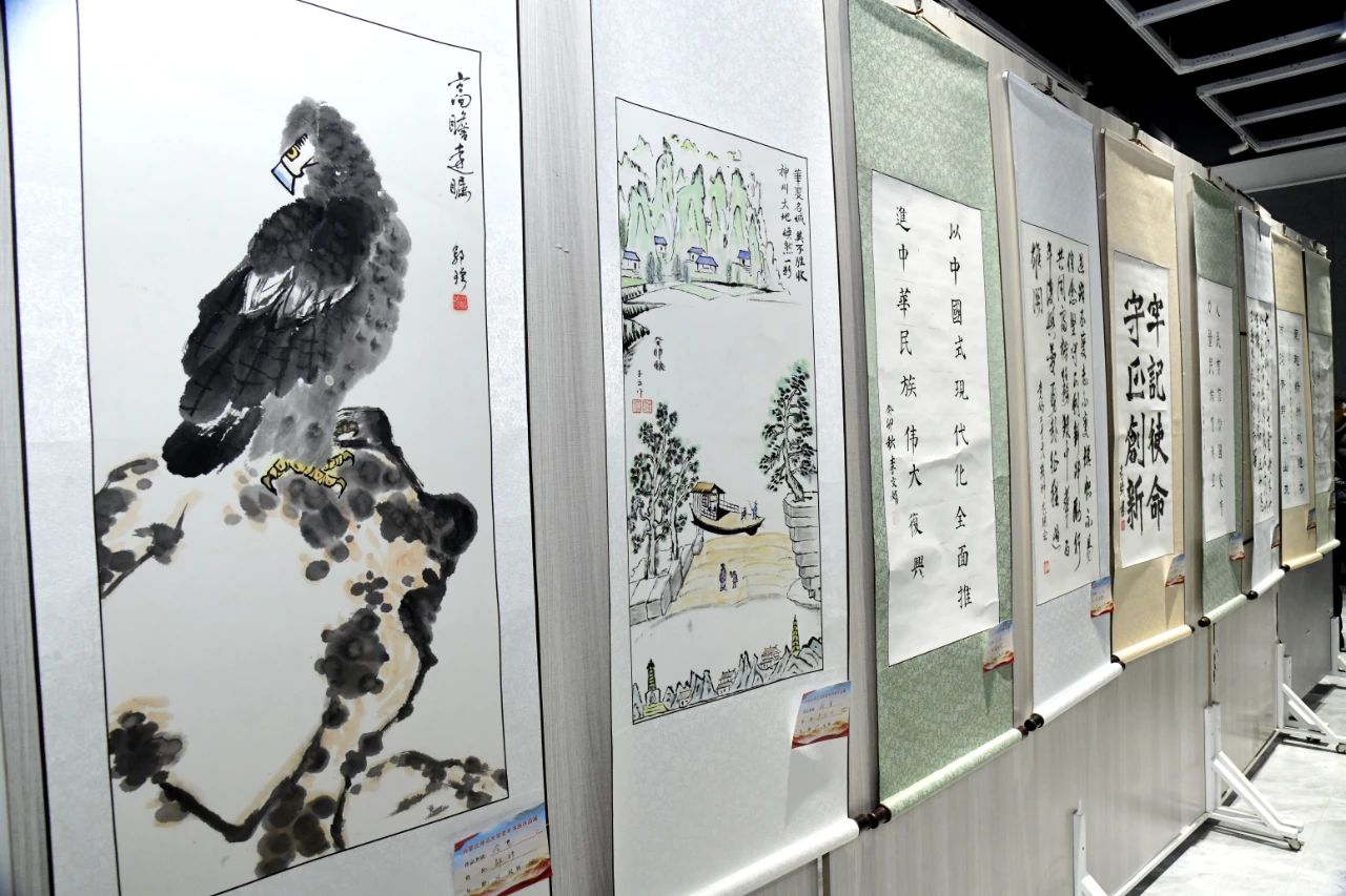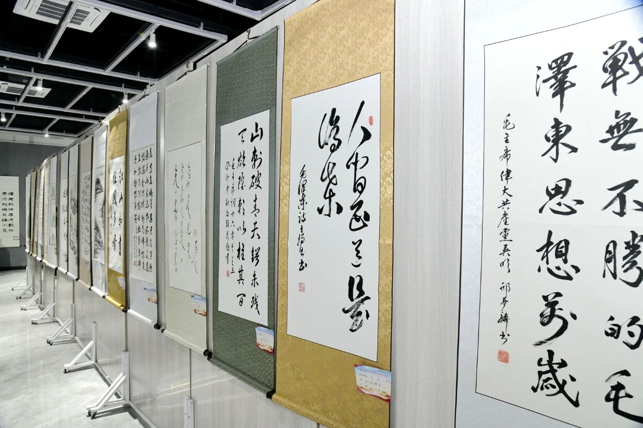 本网讯11月15日上午,由beat365官网离退休教职工工作处、老年书画协会联合举办的“学习贯彻党的二十大精神、纪念毛泽东同志诞辰130周年”主题书画作品展在美术学院实践教学中心开展。党委副书记张海峰出席开幕式并致辞。学校相关部门负责同志、离退休教职工工作处全体人员、美术学院师生代表近100人参加活动。