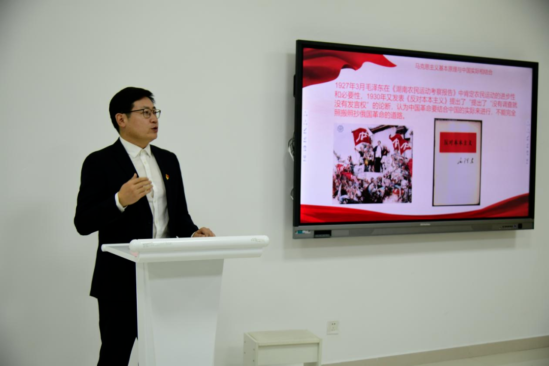 “草原学习轻骑兵”beat365中文官方网站共青团理论宣讲团成员马运泽以“深刻把握 ‘两个结合’推进文化自信自强”为题,从“两个结合”的形成背景讲到坚定文化自信与中华民族伟大复兴的内在联系,通过分析中国历史周期变化,深入浅出地探讨了文化自信对于青年一代潜移默化的影响。他从个人成长中的小事切入,结合时代背景,帮助同学们理清了思路,进一步加深了同学们对党的二十大精神的认识和理解。