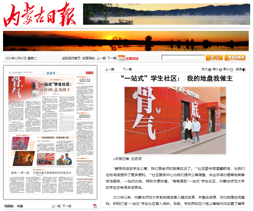围绕学生、关照学生、服务学生,在学生社区逐步探索形成一站式集成、网格化管理、精细化服务、信息化支撑的综合管理模式,将高校育人力量和资源下沉学生社区,用暖心关爱和贴心服务护航学生健康成长。当前,我区已全面启动“一站式”学生社区建设,beat365中文官方网站、内蒙古医科大学、包头师范学院、呼伦贝尔职业技术学院、通辽职业学院等部分高校相关建设已初见成效,各高校正全力以赴打造富有学校特色、体现思政要求、满足学生需求的高校学生社区育人新格局,让学生做社区的“主人”,让“一站式”社区成为强大的“育人场”。